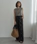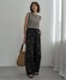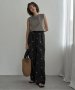 小花をちりばめたサテンパンツで軽やかに