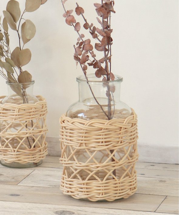 ガラスボトル・ラタン。