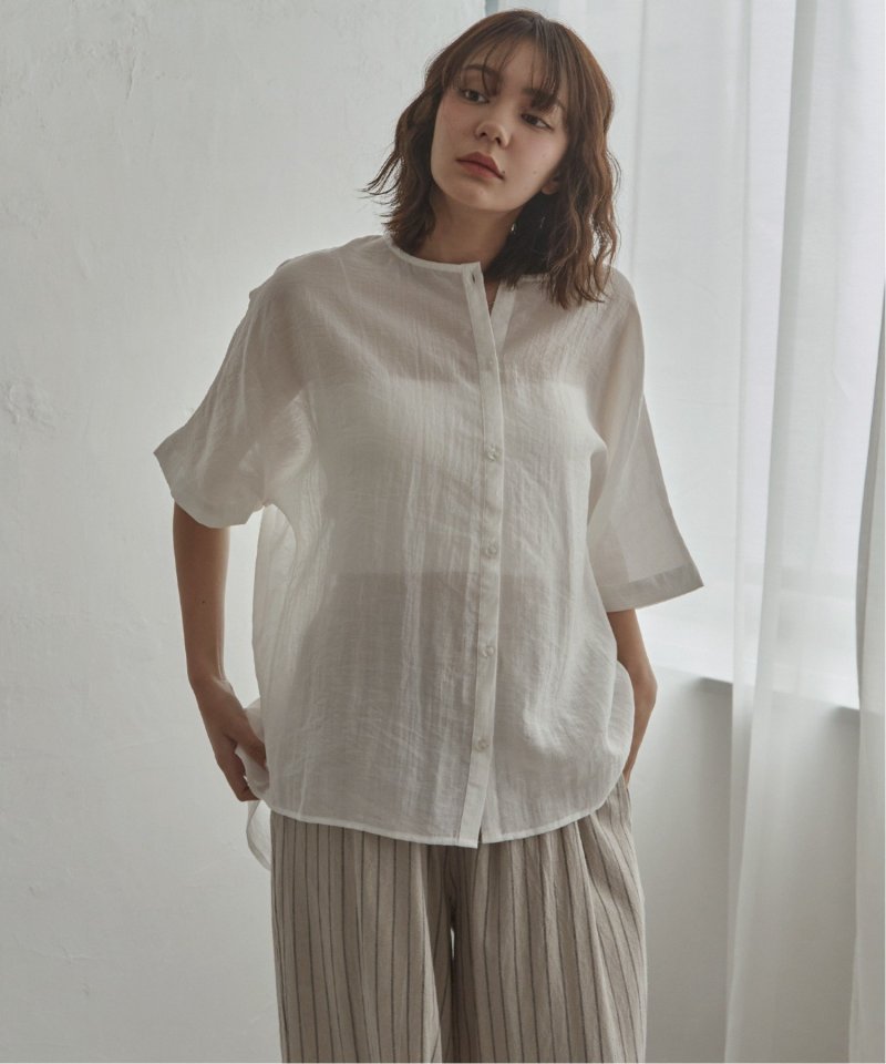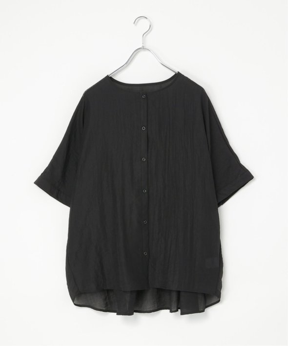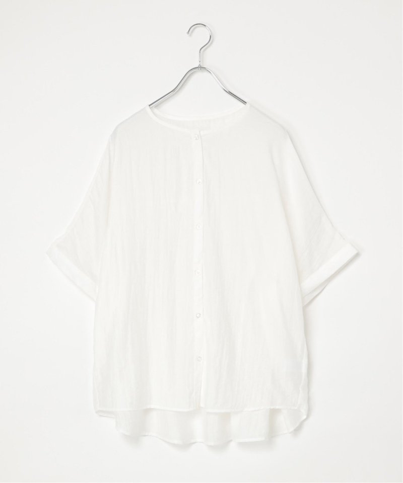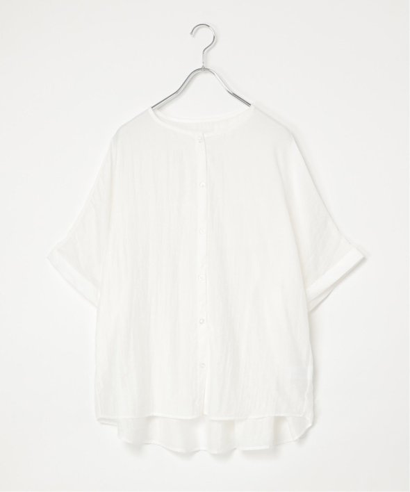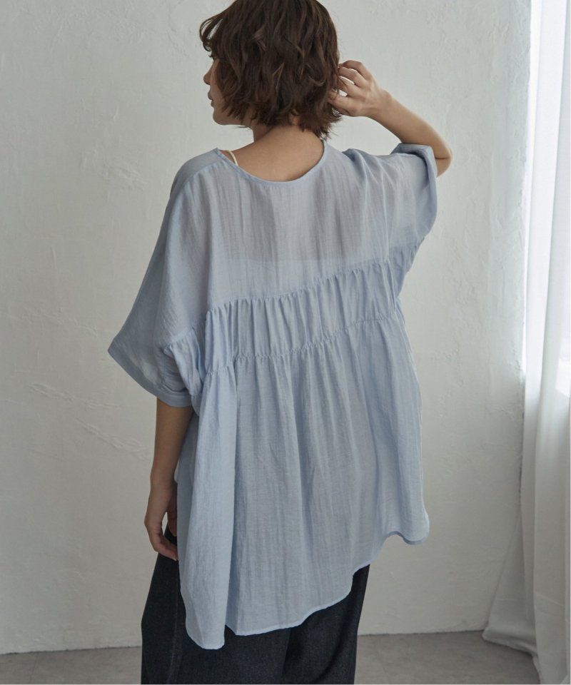 バックにギャザーをあしらった立体感のあるシルエットが涼しげなブラウス。
