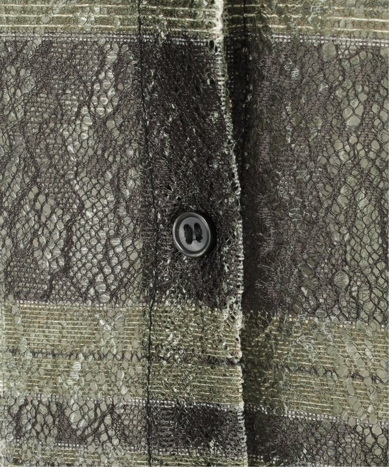 レースをプリントしたチェック柄が印象的なシャツ。