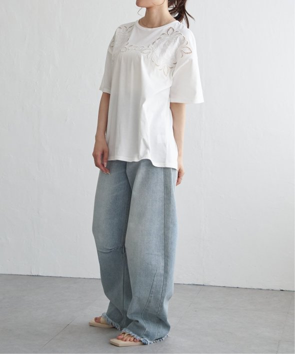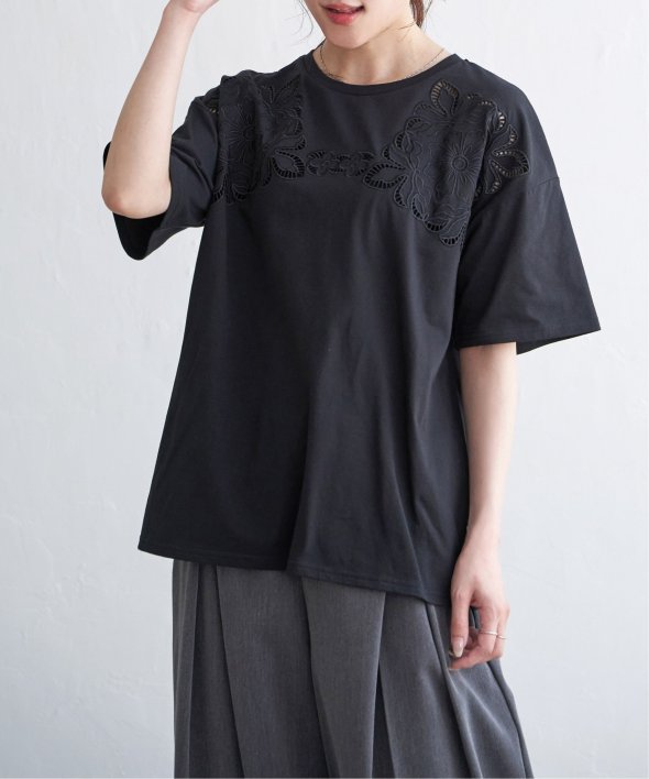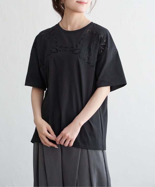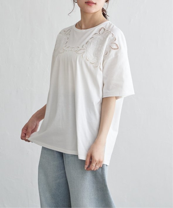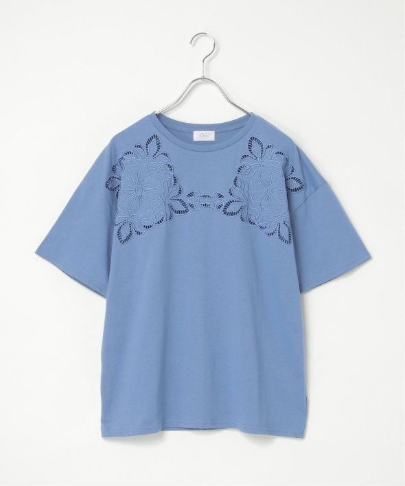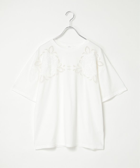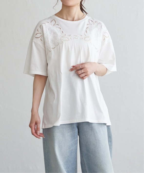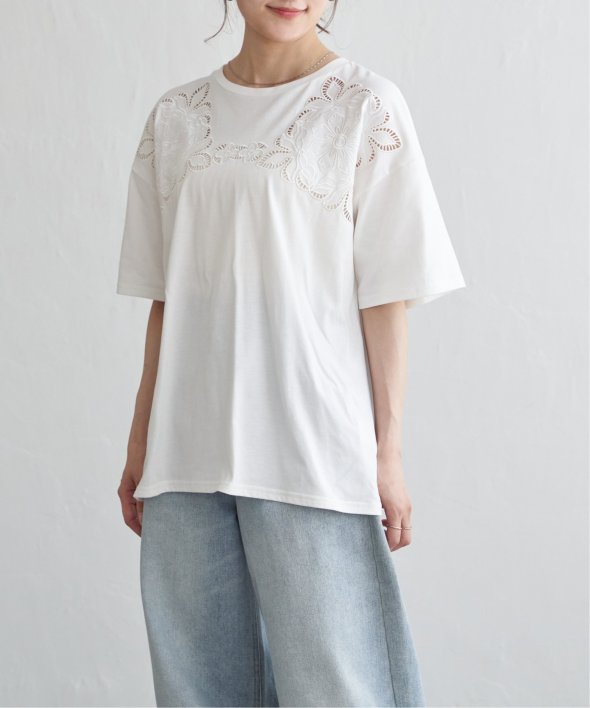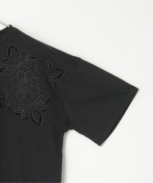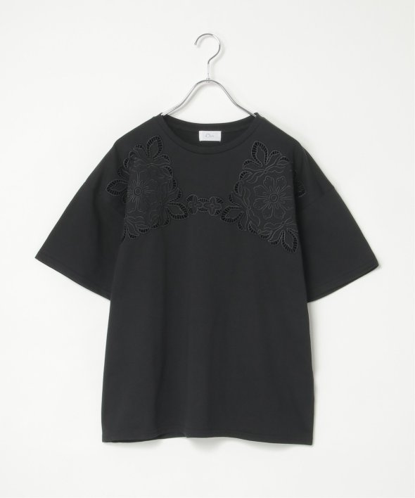 フロントに施された花柄のカットワーク刺繍が目を引くTシャツ。