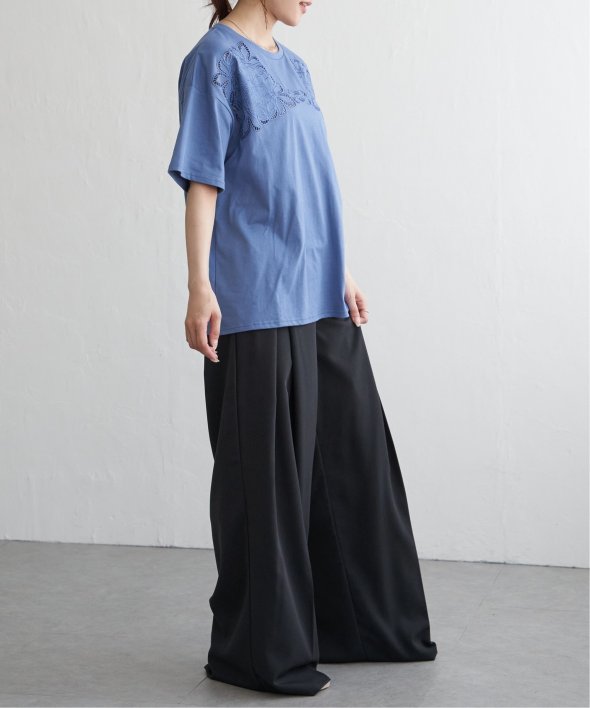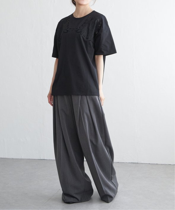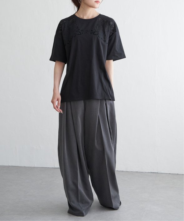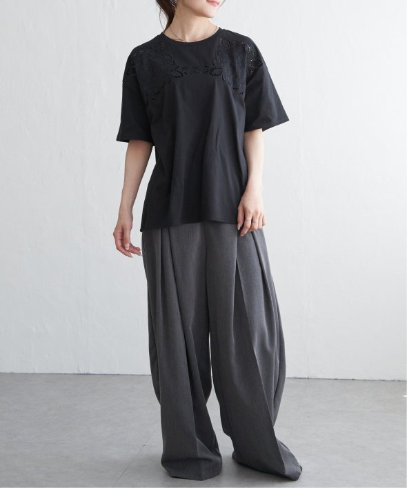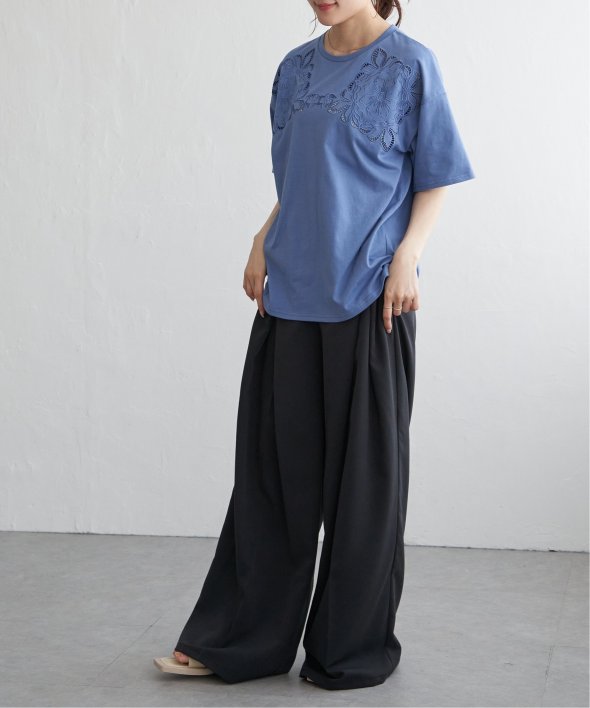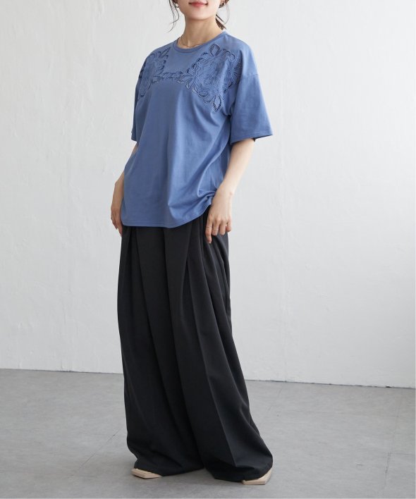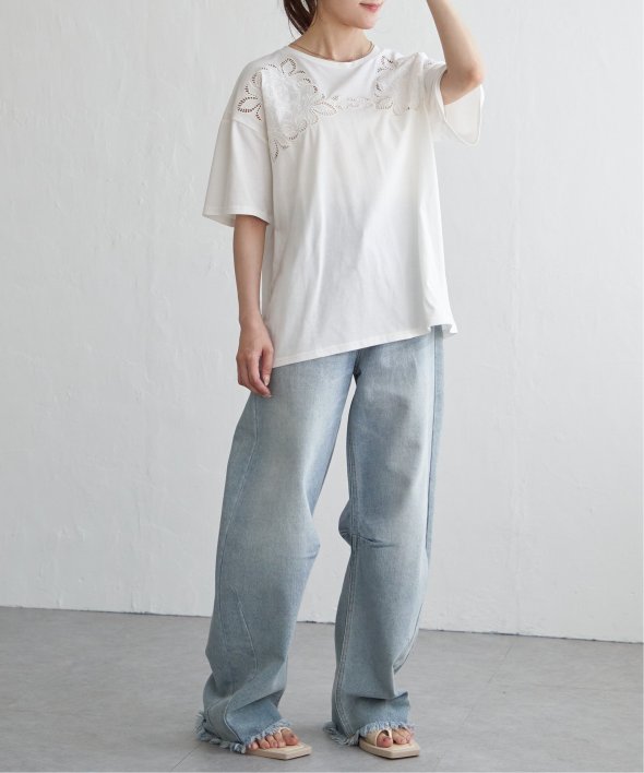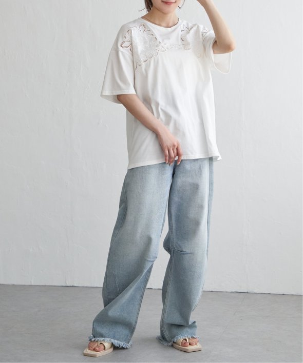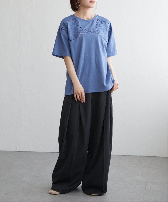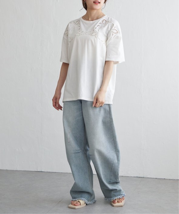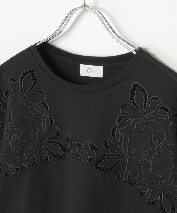 フロントに施された花柄のカットワーク刺繍が目を引くTシャツ。