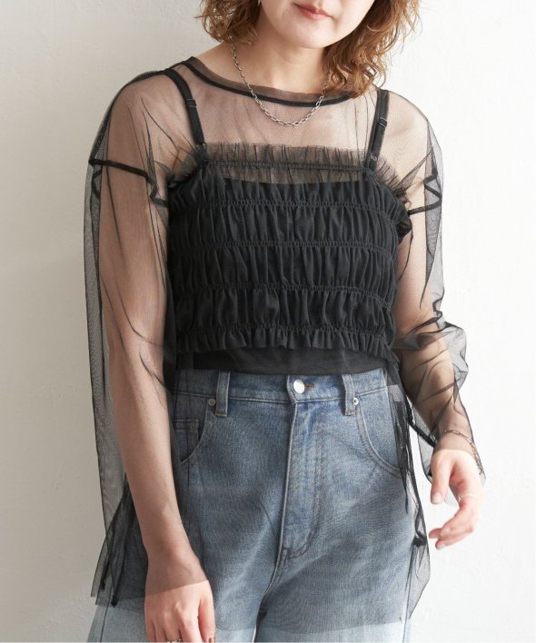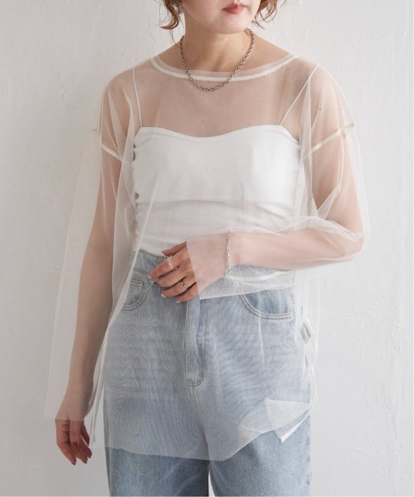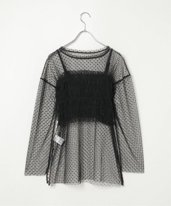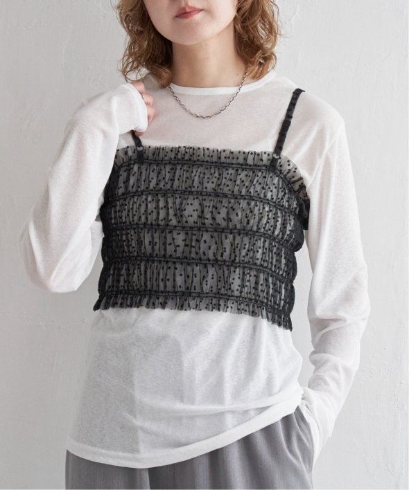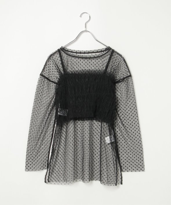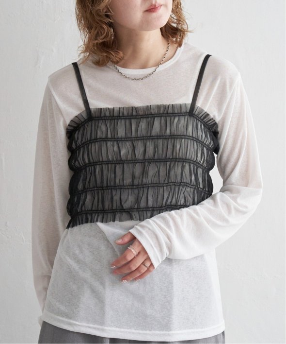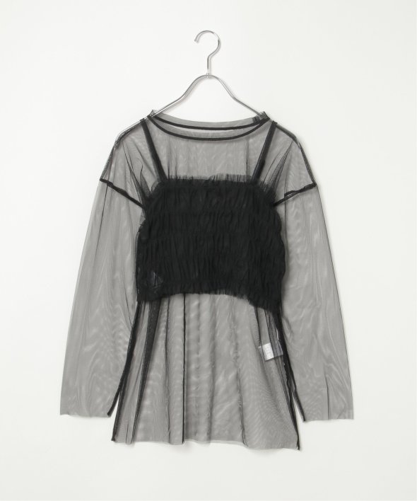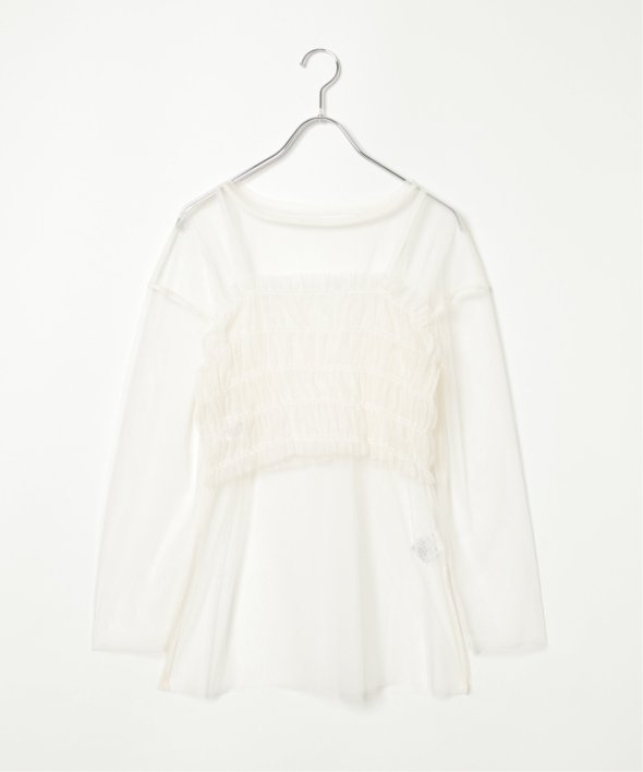チュール素材を使用した透け感が可愛らしいビスチェとロンTシャツのセットです。