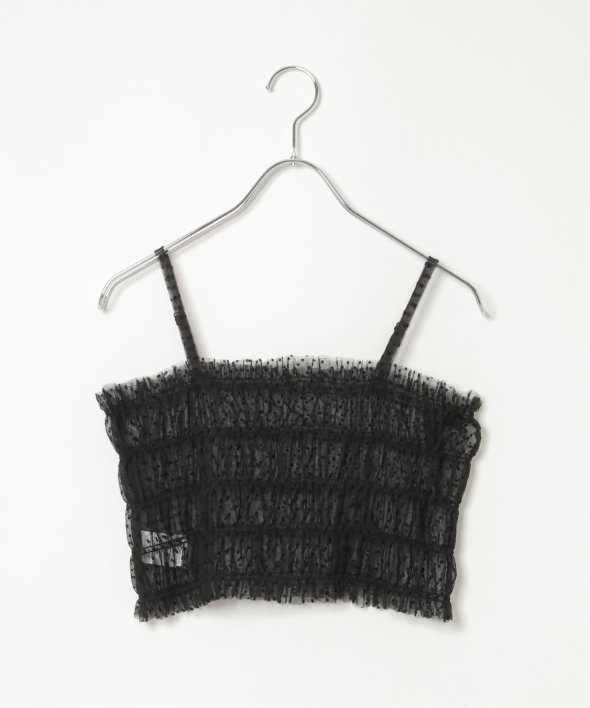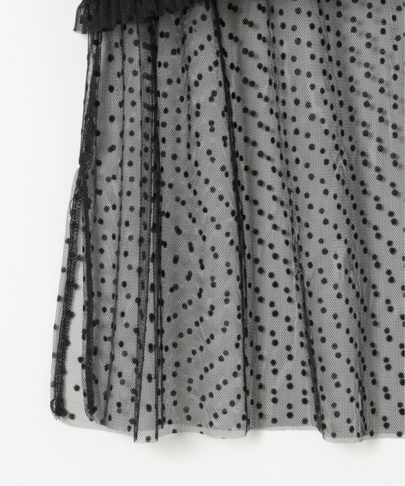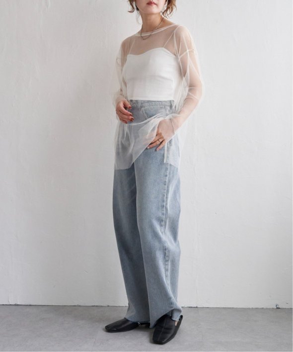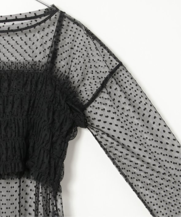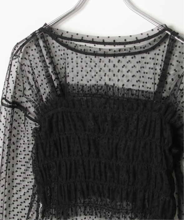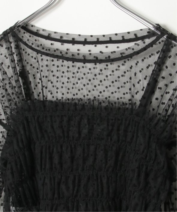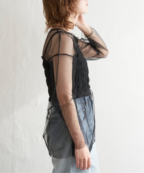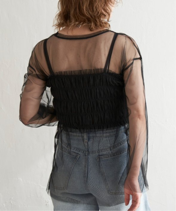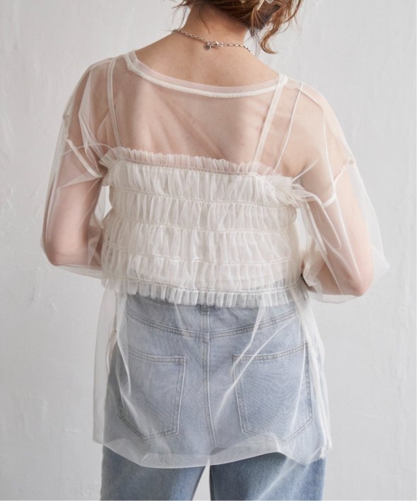 チュール素材を使用した透け感が可愛らしいビスチェとロンTシャツのセットです。