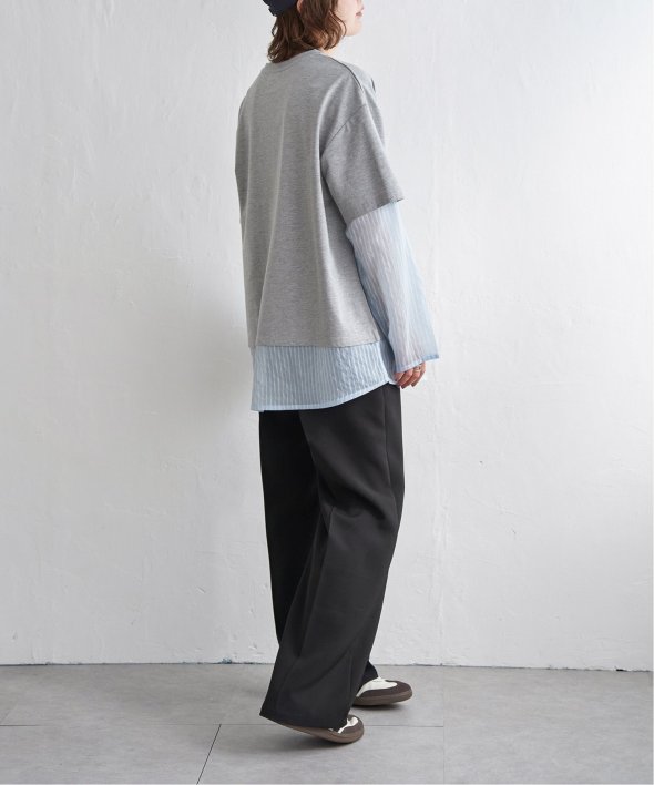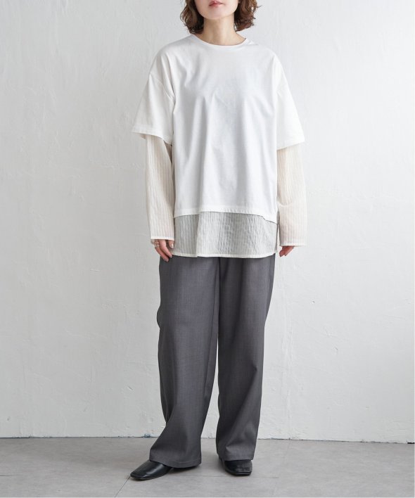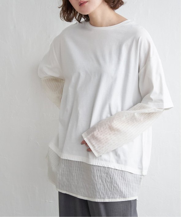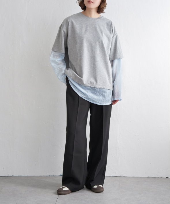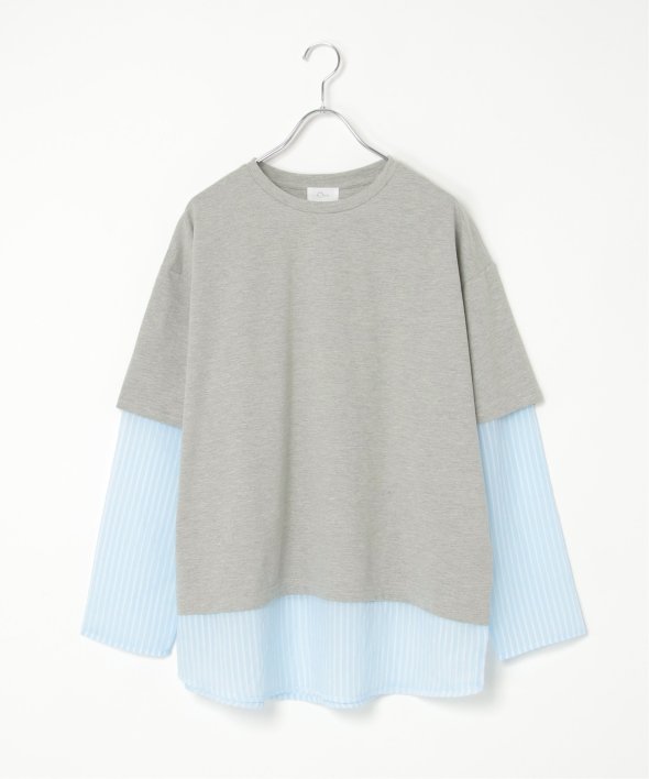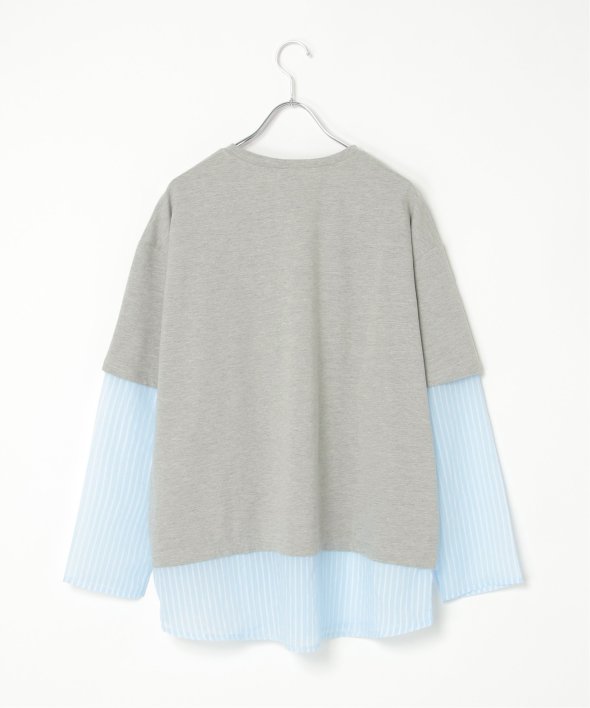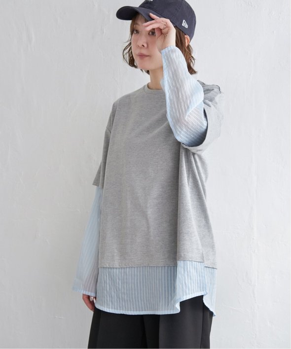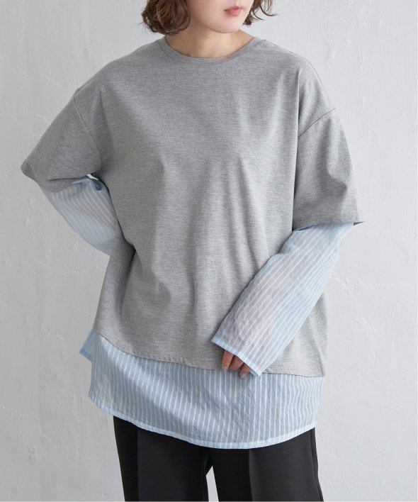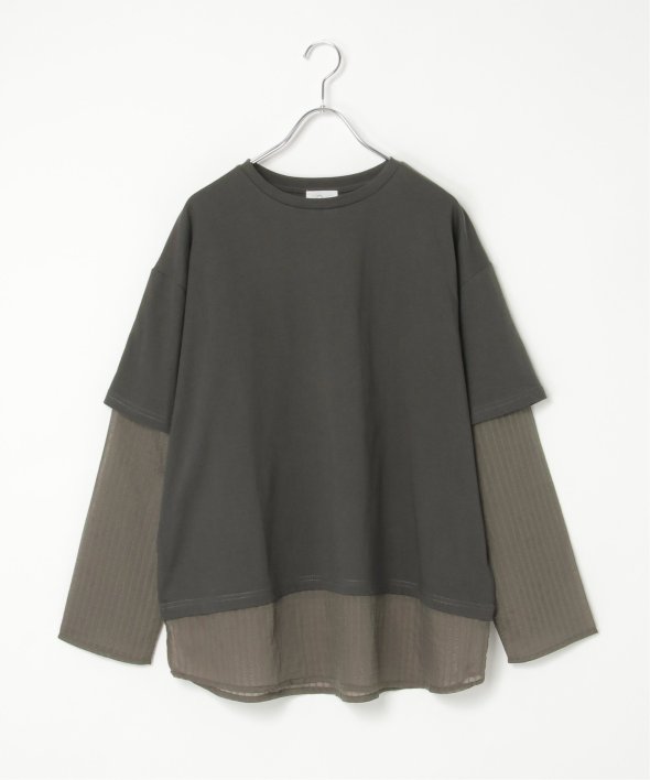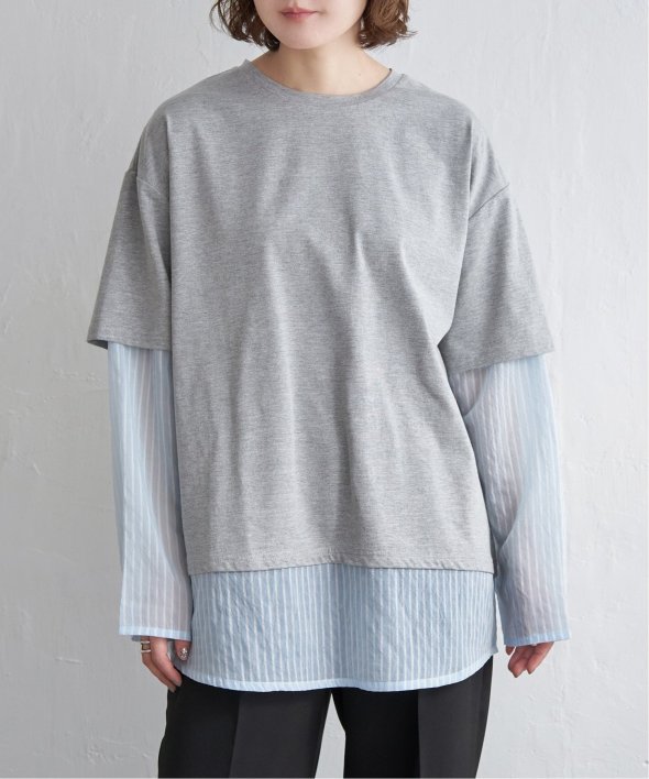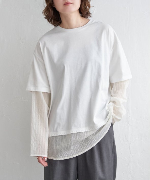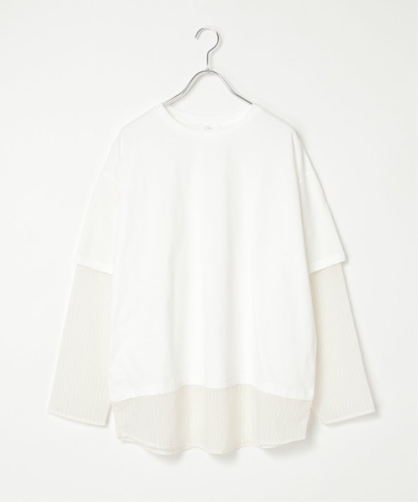 無地Tの下にシアーストライプのロンTを重ねたフェイクレイヤードデザイン!