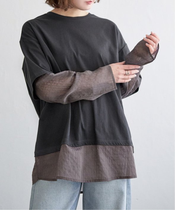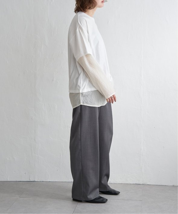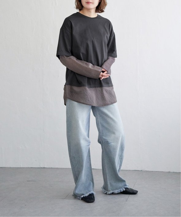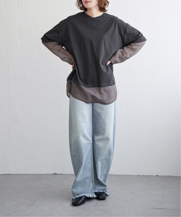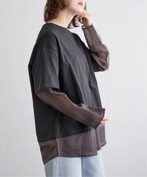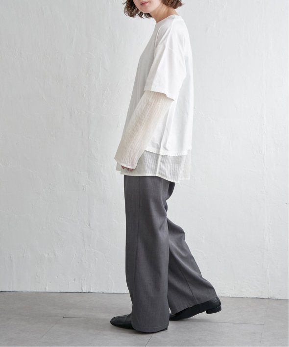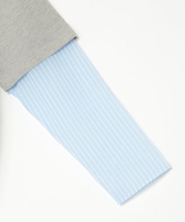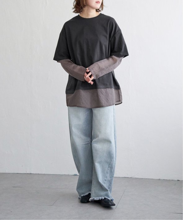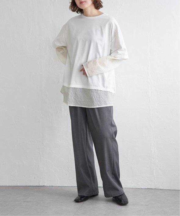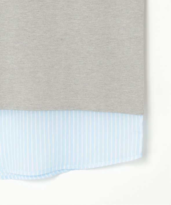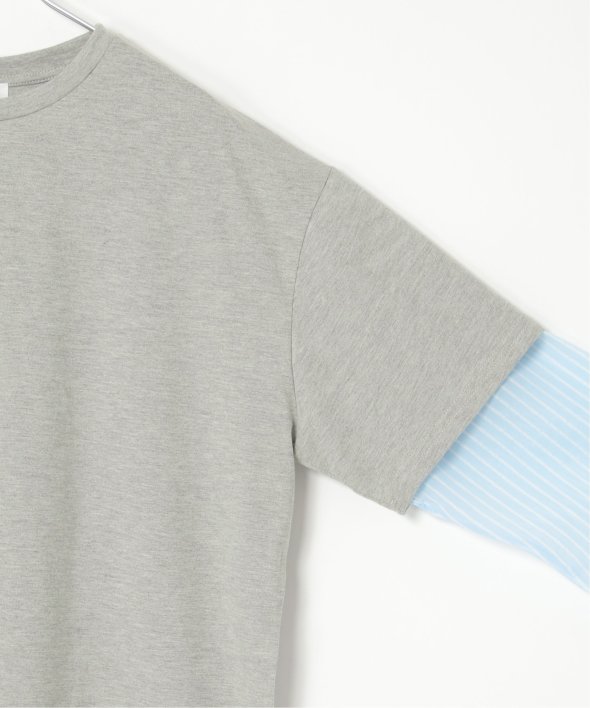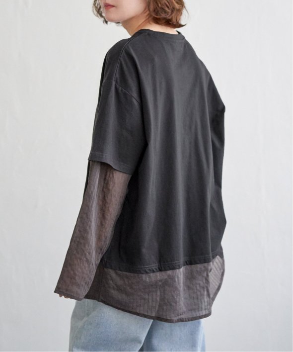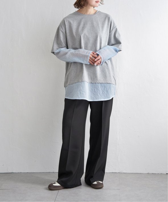 無地Tの下にシアーストライプのロンTを重ねたフェイクレイヤードデザイン!