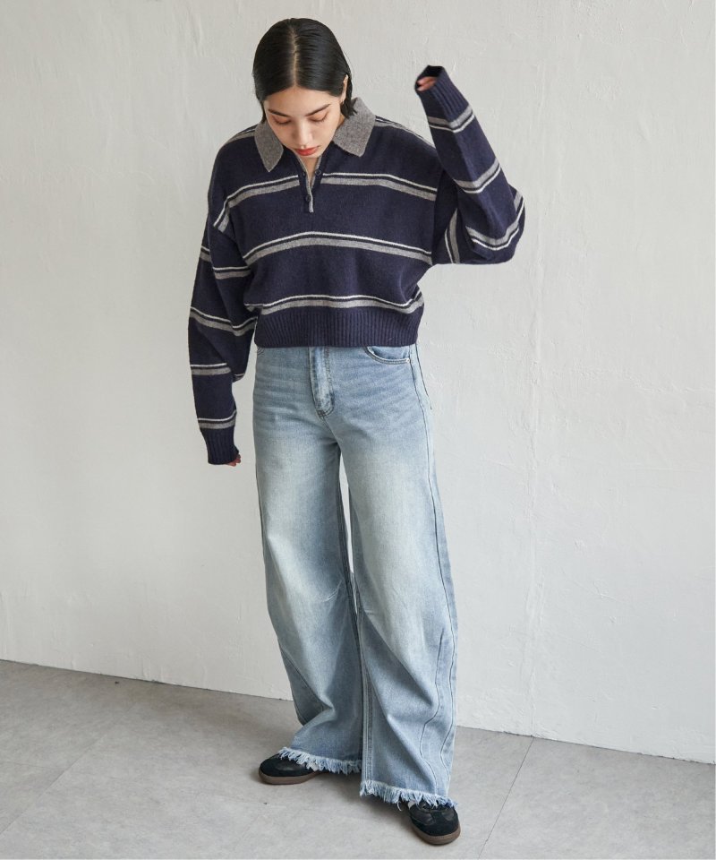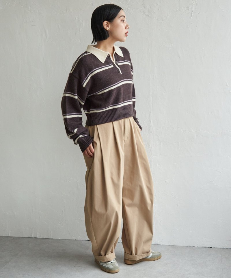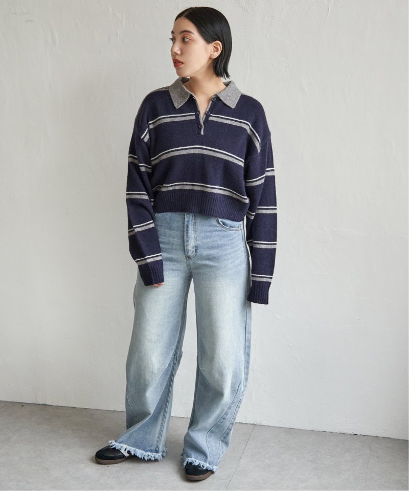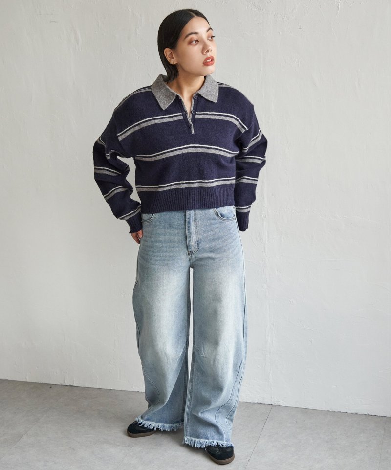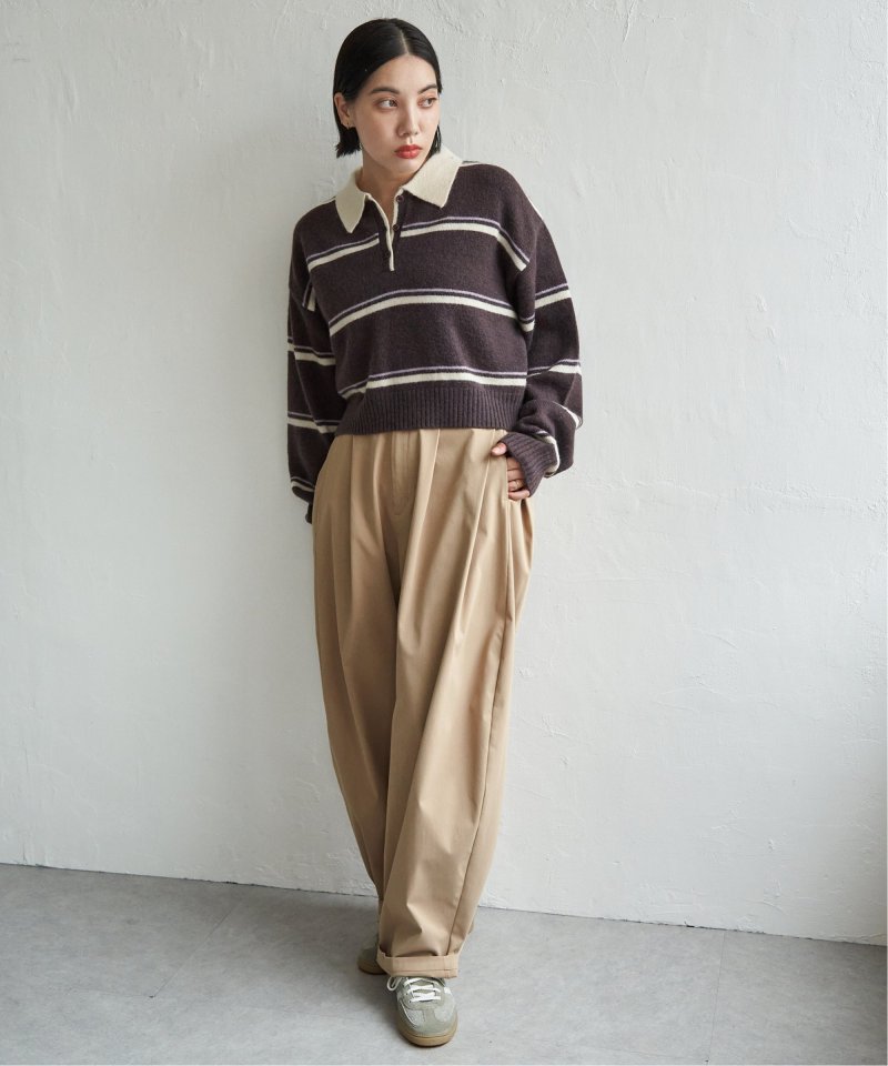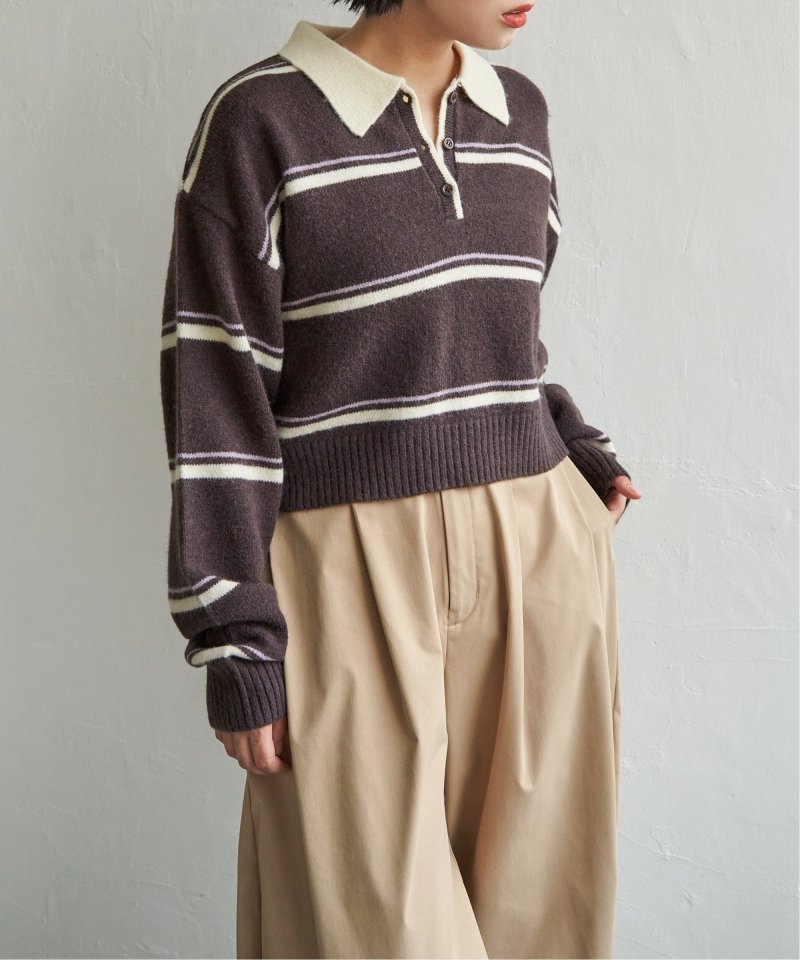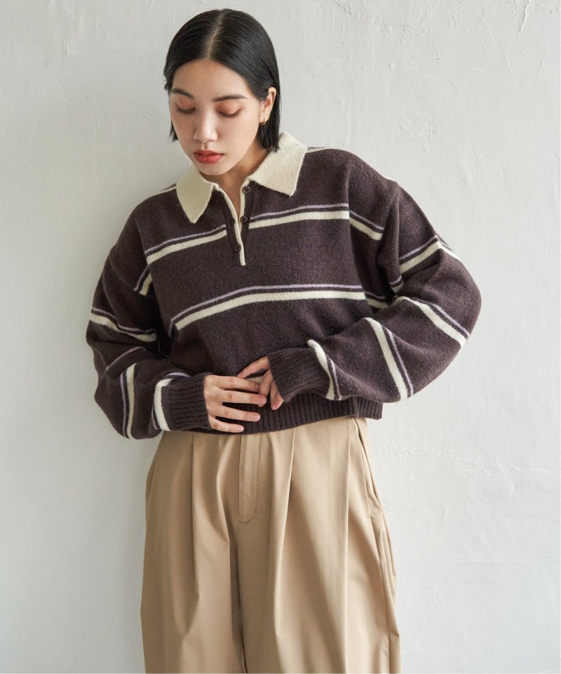 マンネリ化しがちなニットコーデのアクセントにぴったりな、ポロシャツ風ニット。