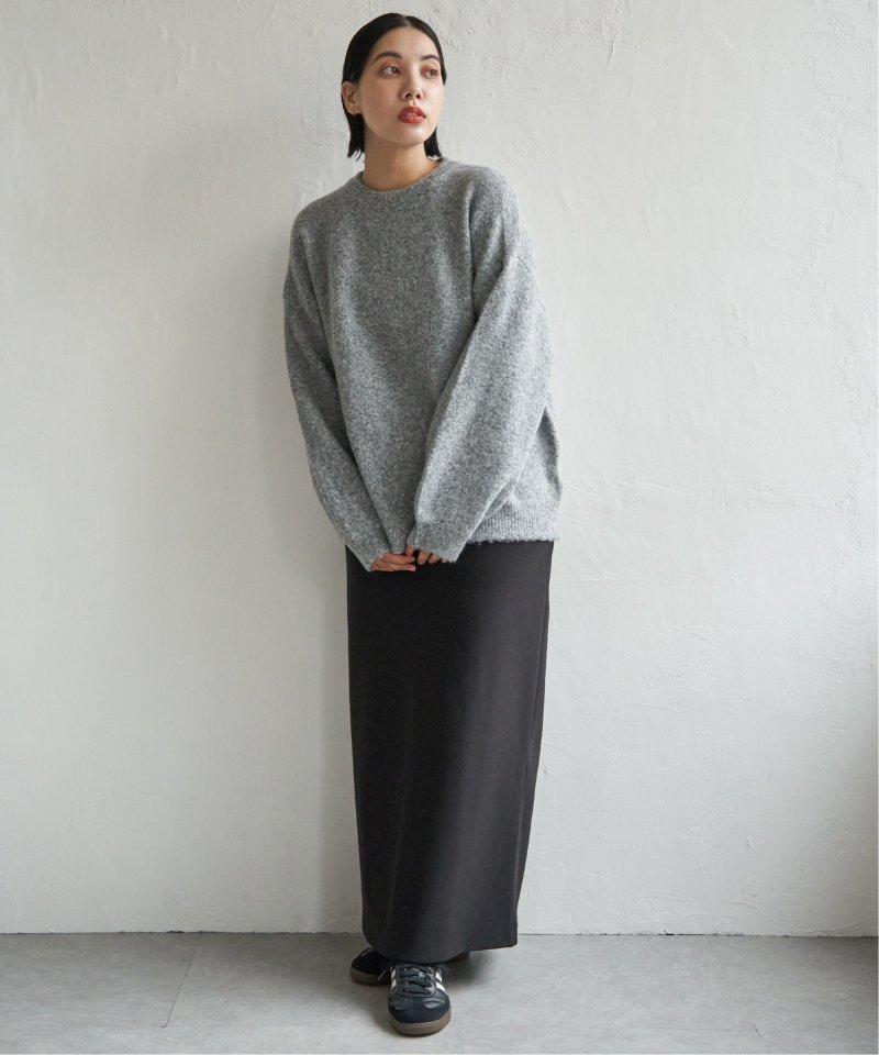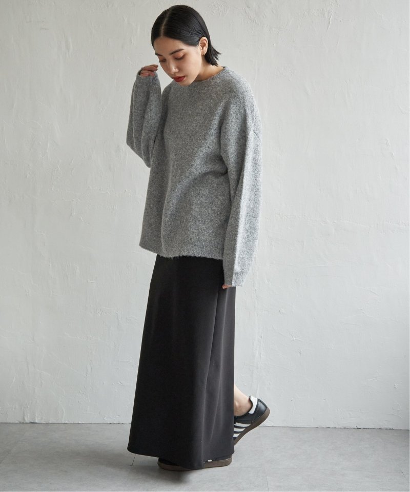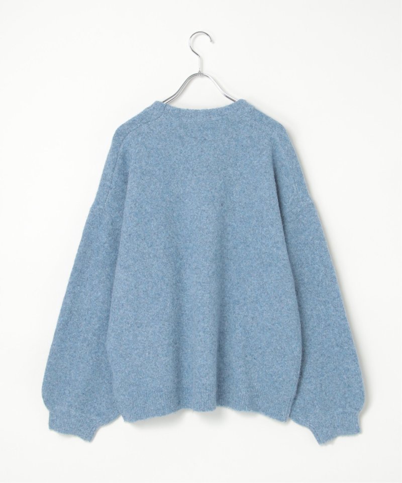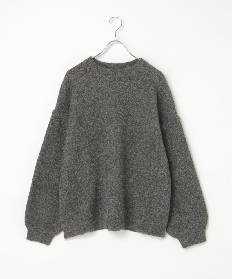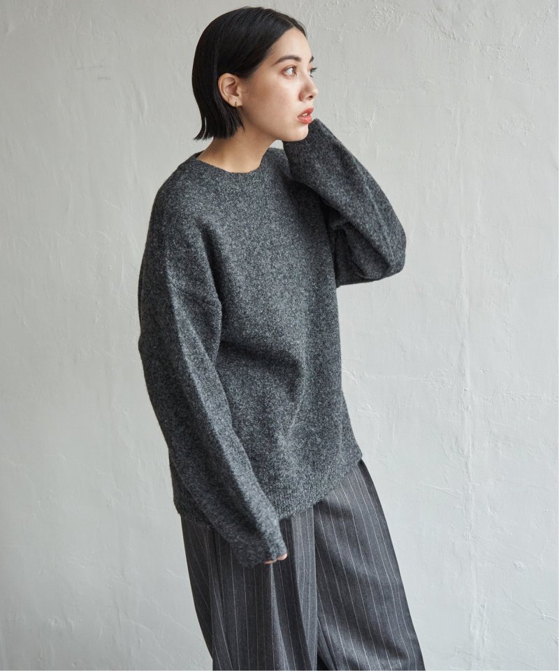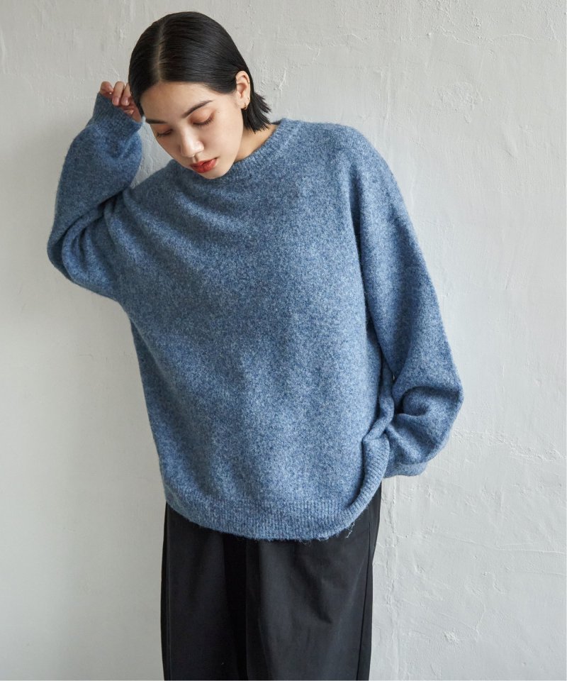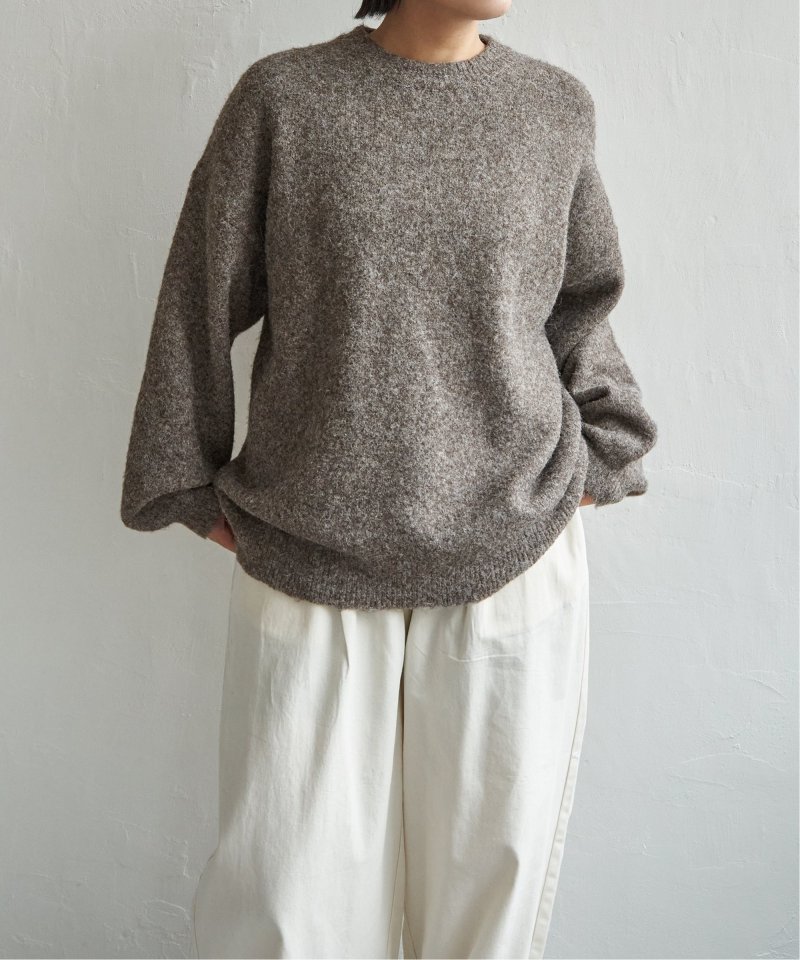 表情豊かな杢調のクルーネックニット。
