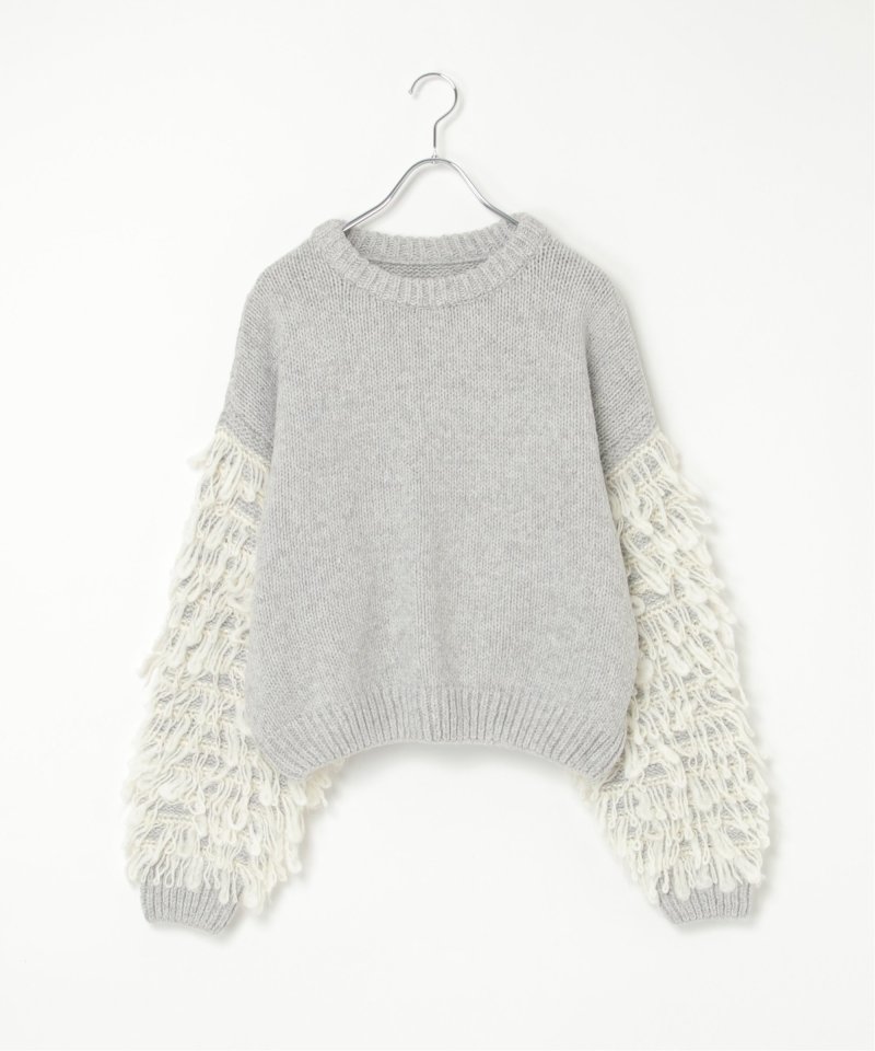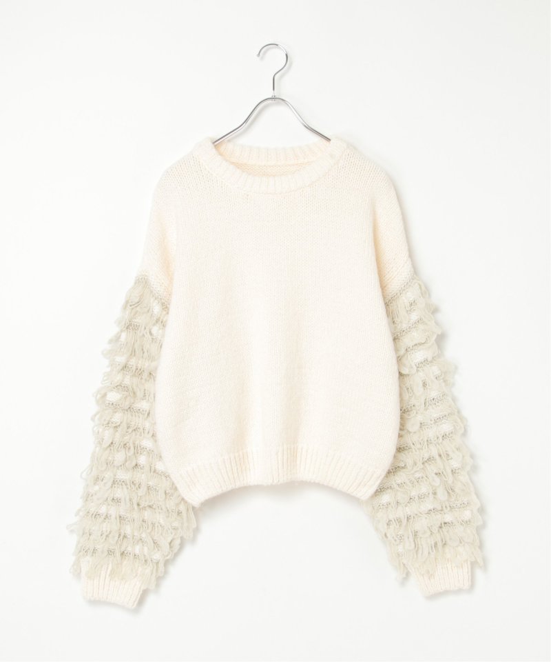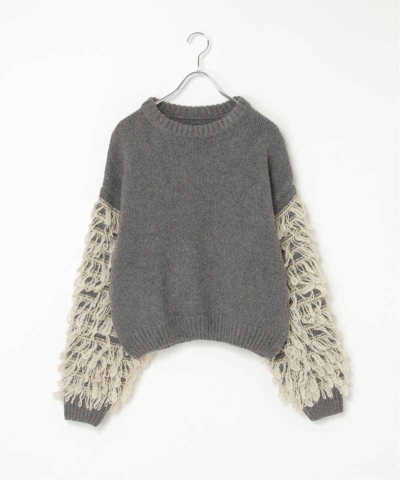 袖をループ編みに切り替えたデザイン性のあるニット。