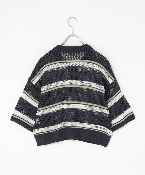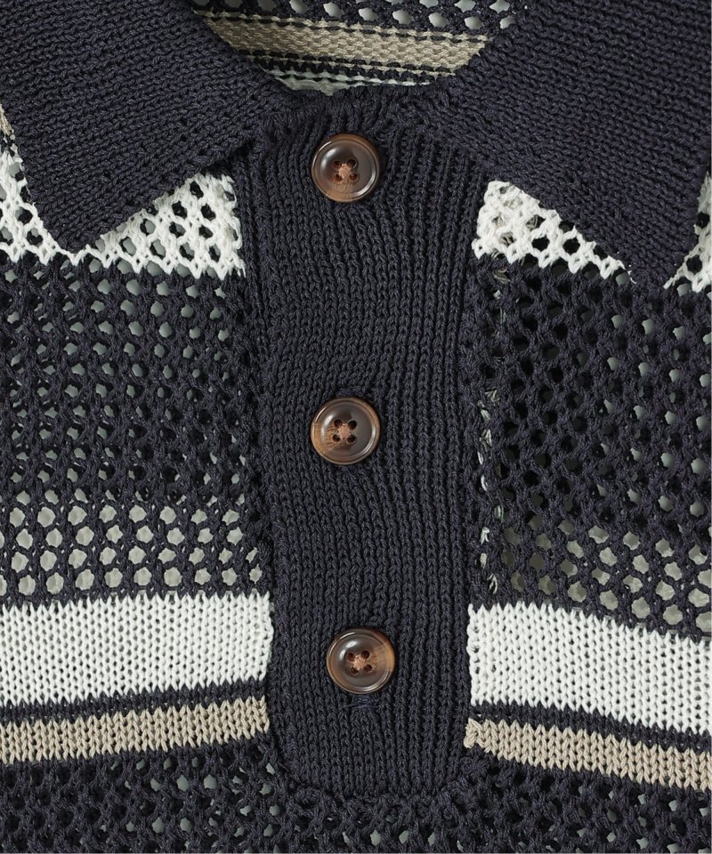 ポロカラーできちんと感を残しつつ、メッシュ編みで抜けすぎない軽快な印象に仕上げています。