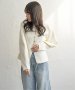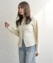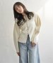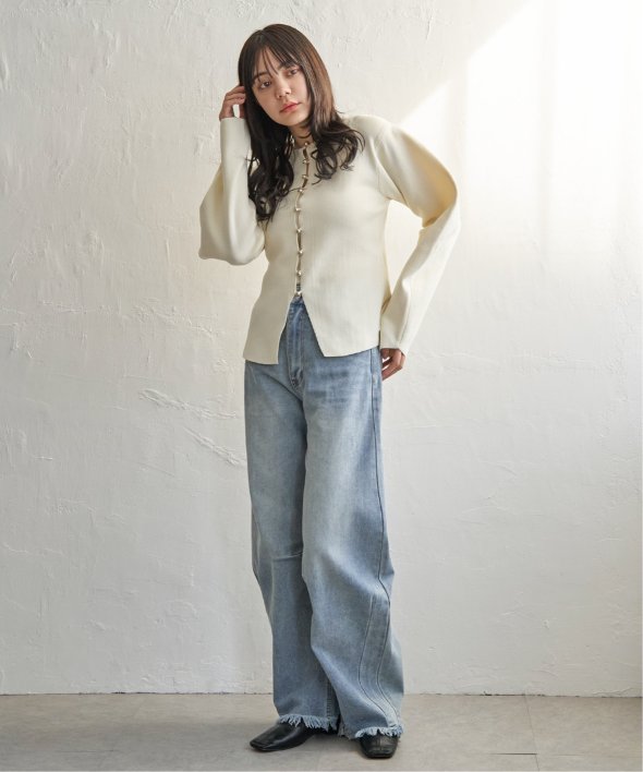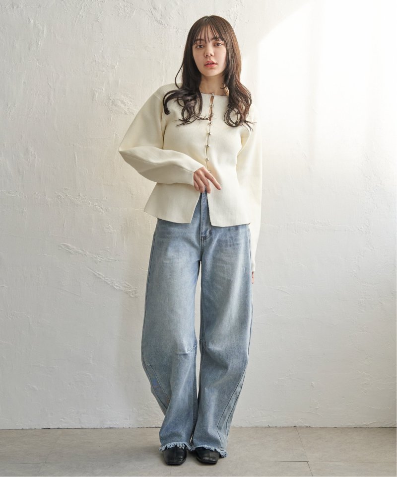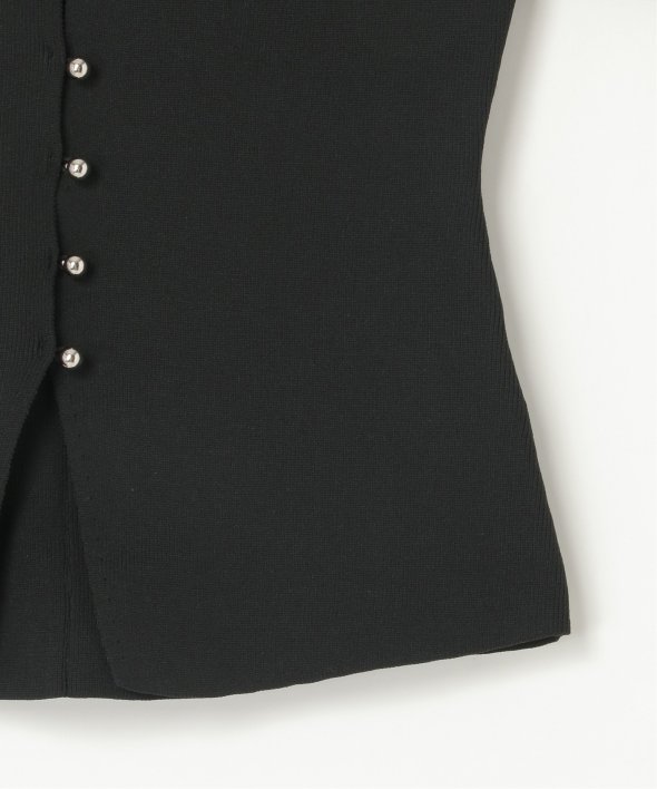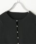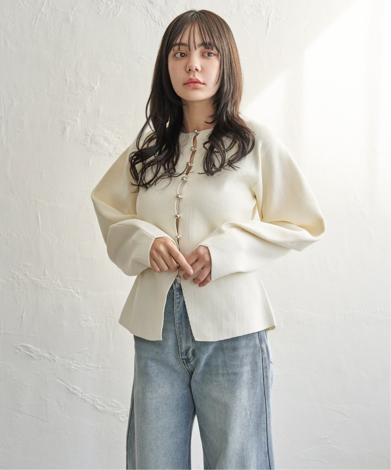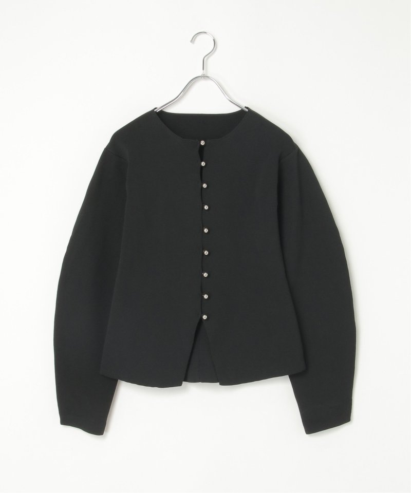 シルバーボタンがほどよくきらめき、バナナスリーブの丸みが女性らしいやわらかさを演出します。