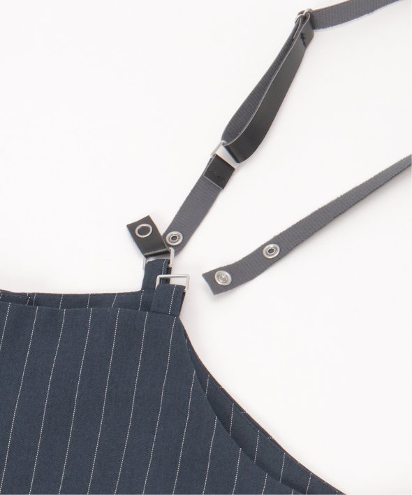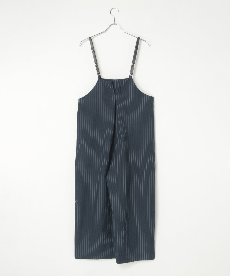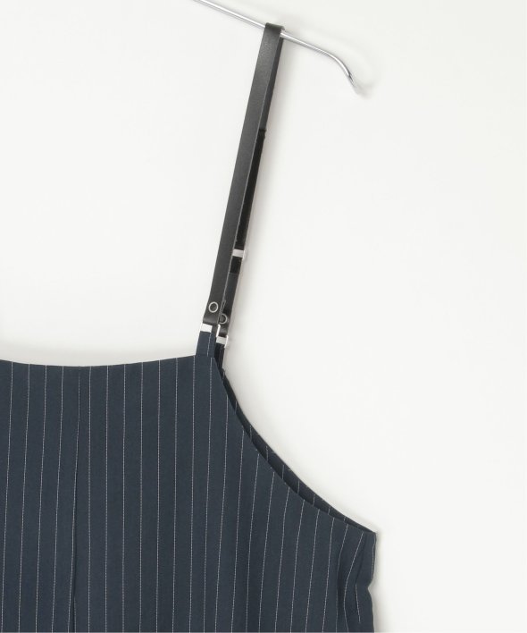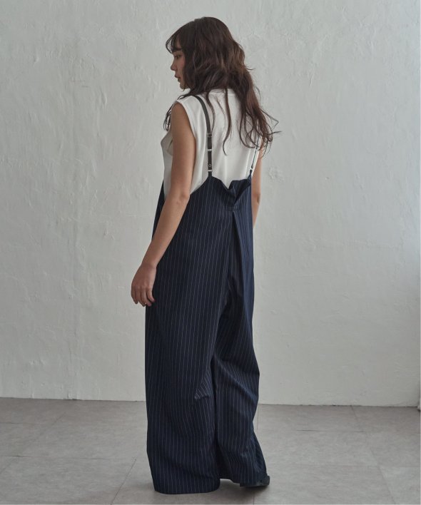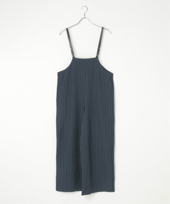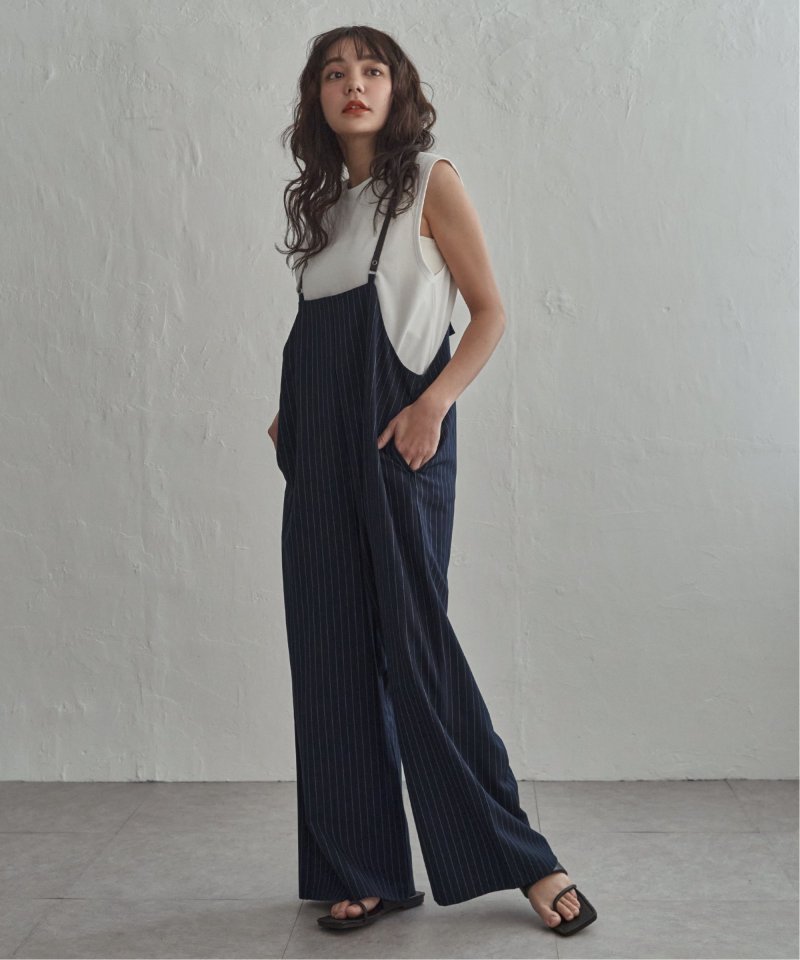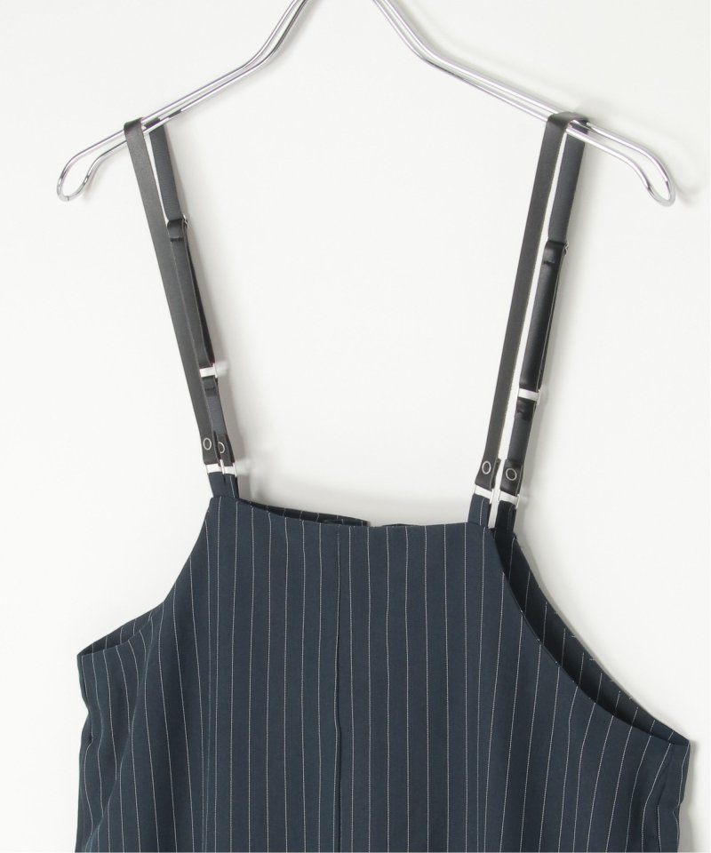 マニッシュなストライプ柄を、華奢なストラップデザインで女性らしく落とし込んだサロペット。