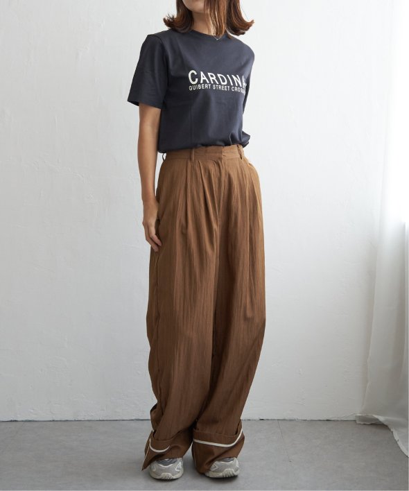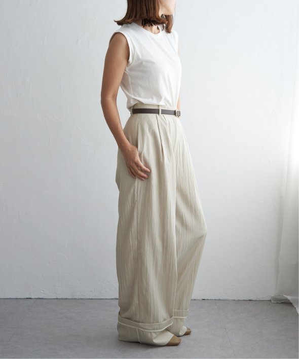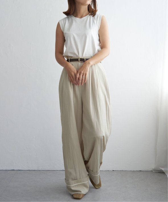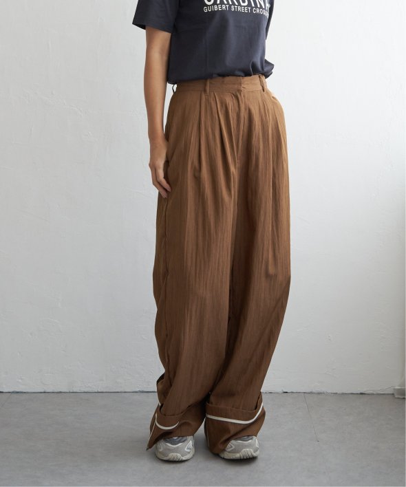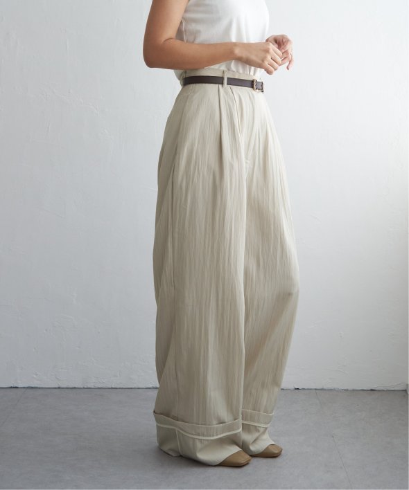 たっぷりとしたシルエットが魅力のワイドパンツ。