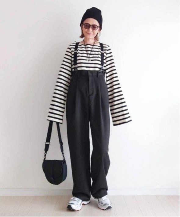 組み合わせだけでなく、プリントロンTやスニーカー、ニットワッチ