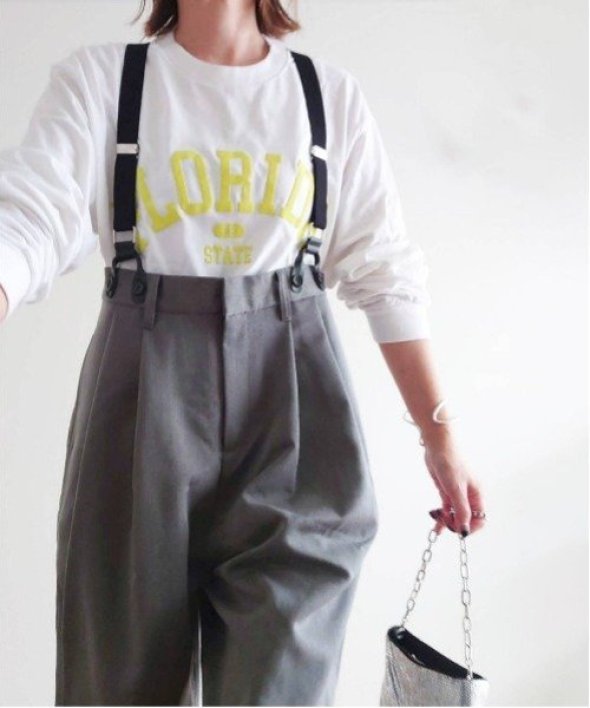 yuiさんとコラボのサスペンダー付きハイウェストパンツが大人気につき、