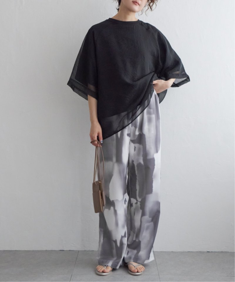 シンプルTと合わせて完成する夏の主役パンツ ニュアンス柄イージーパンツ