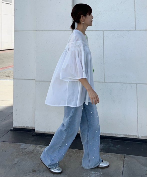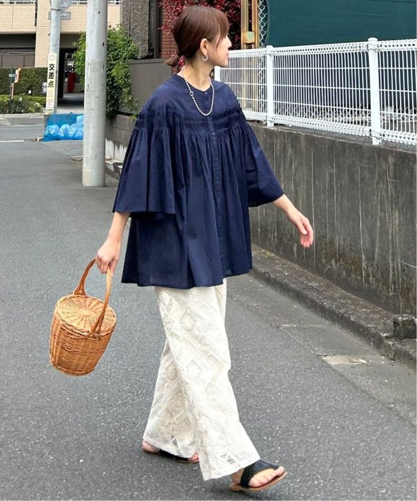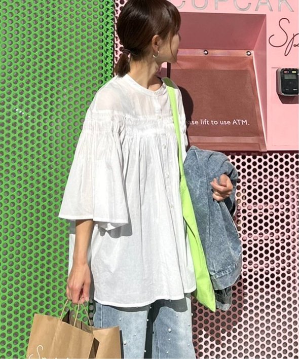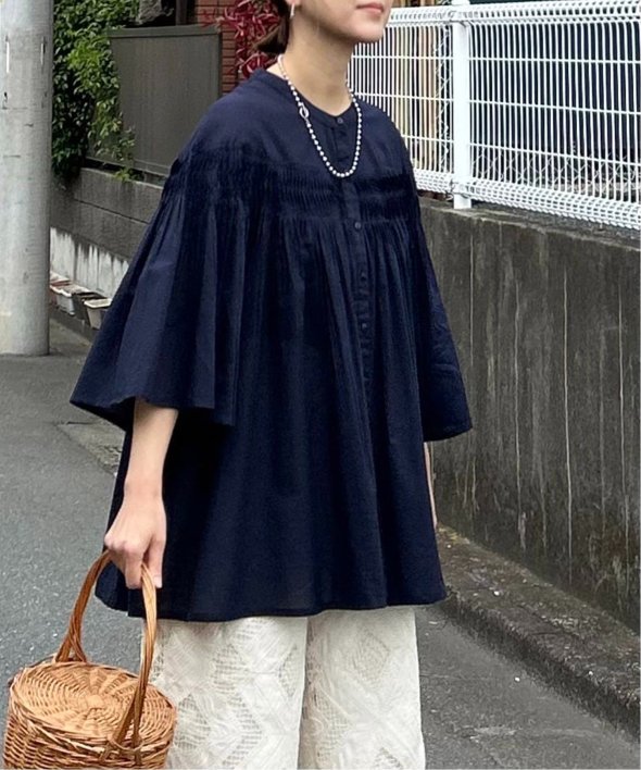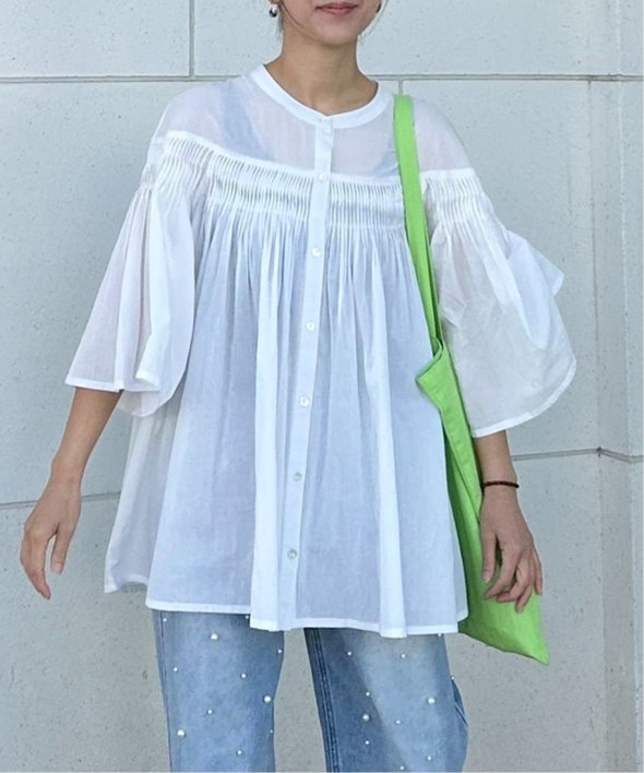 ピンタックの効果でふんわりと自然に広がるシルエットが、軽やかで涼しげな表情を演出してくれます。