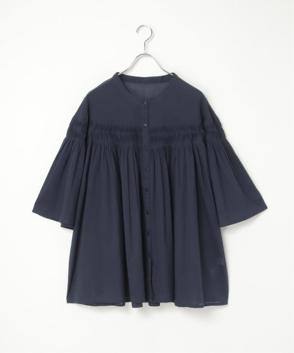 ぐるりと一周ピンタックが施されたフレアブラウス。