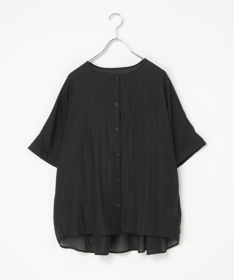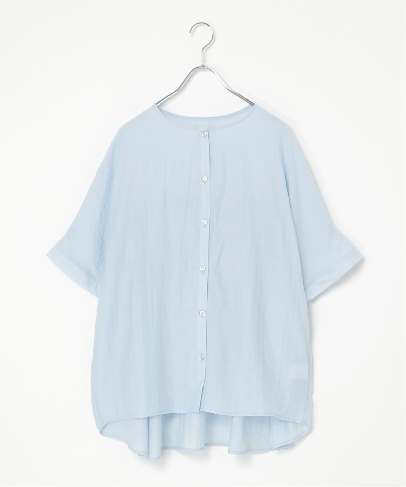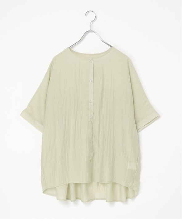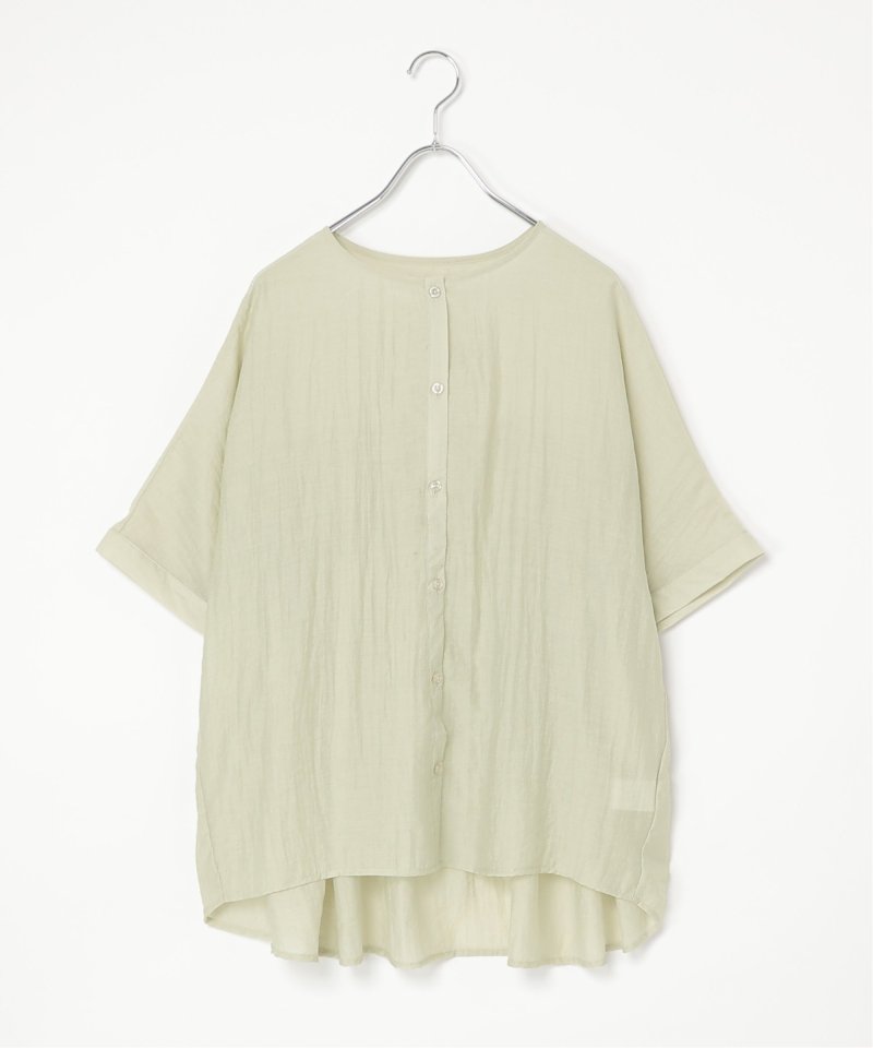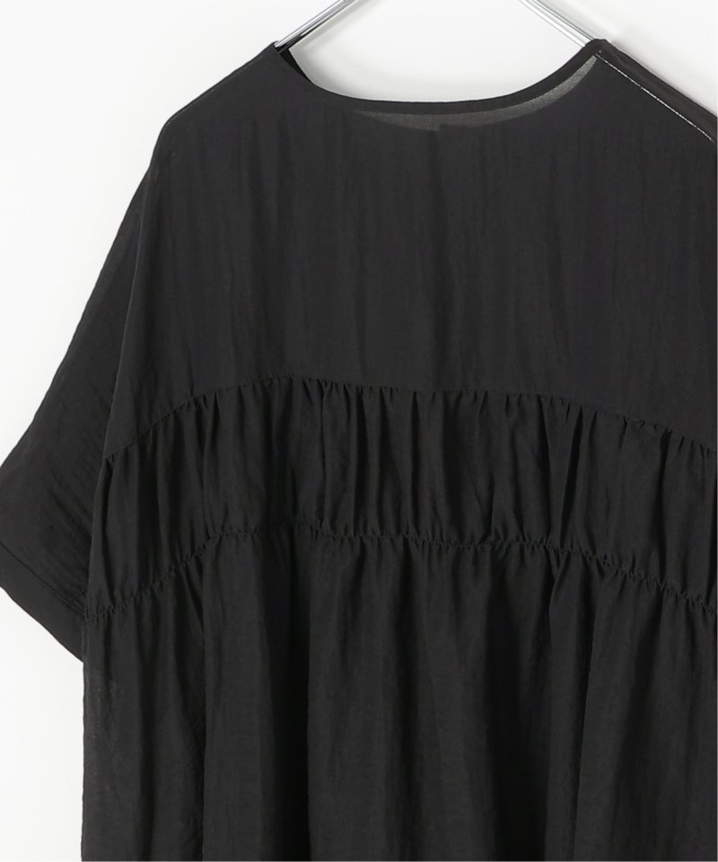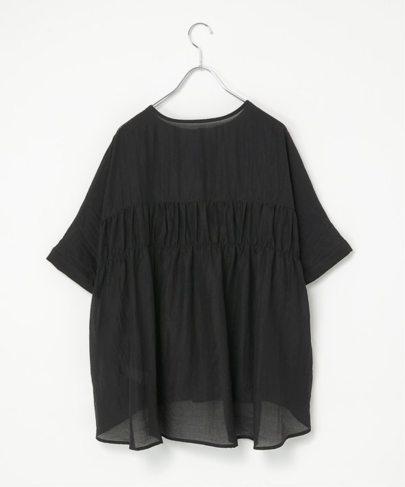 バックにギャザーをあしらった立体感のあるシルエットが涼しげなブラウス。