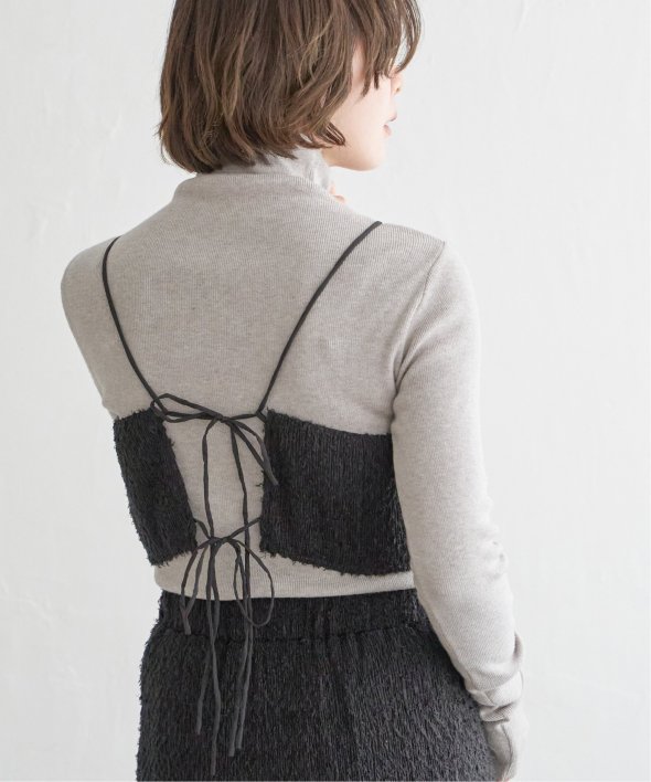 ショート丈のため、ビスチェのように重ね着できるアイテムです。