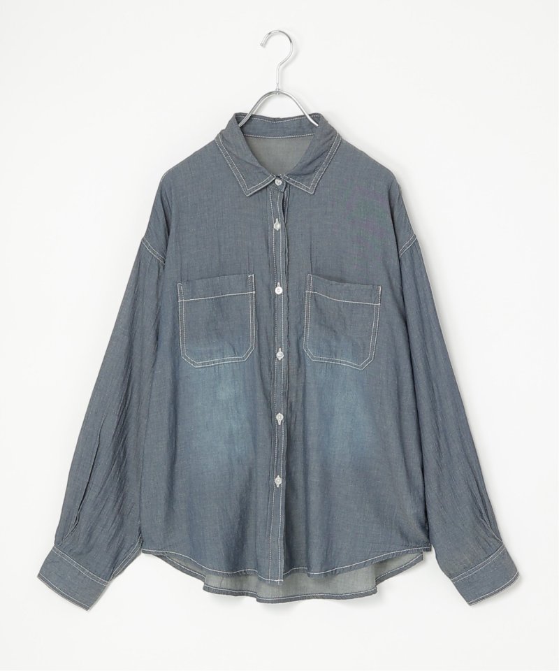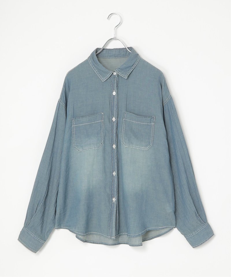 柔らかい薄手の素材で透け感のある大人なシアーデニムシャツ。
