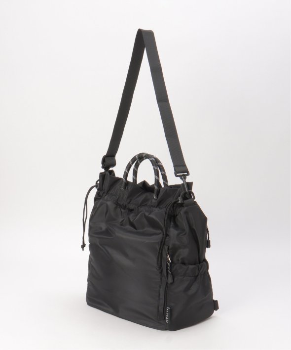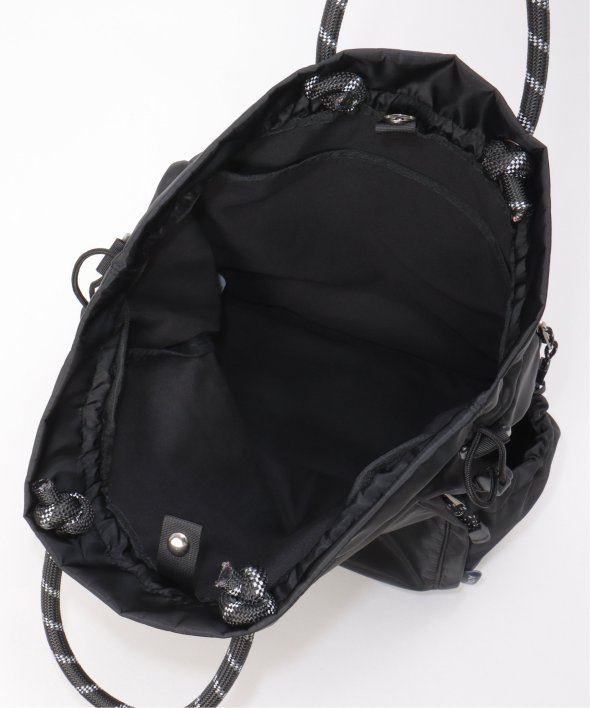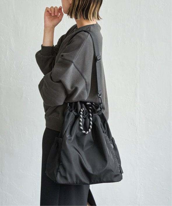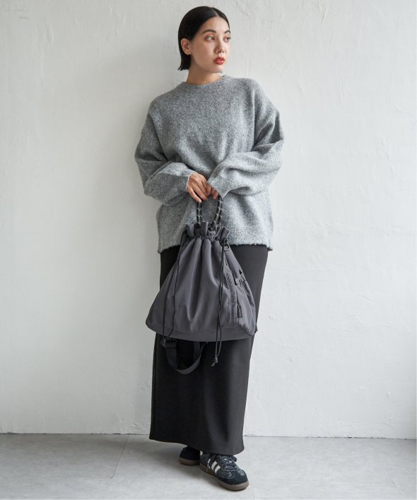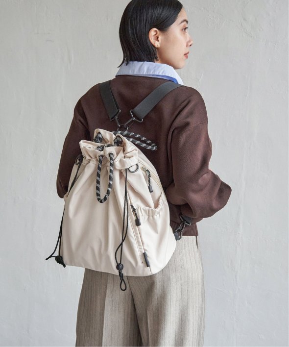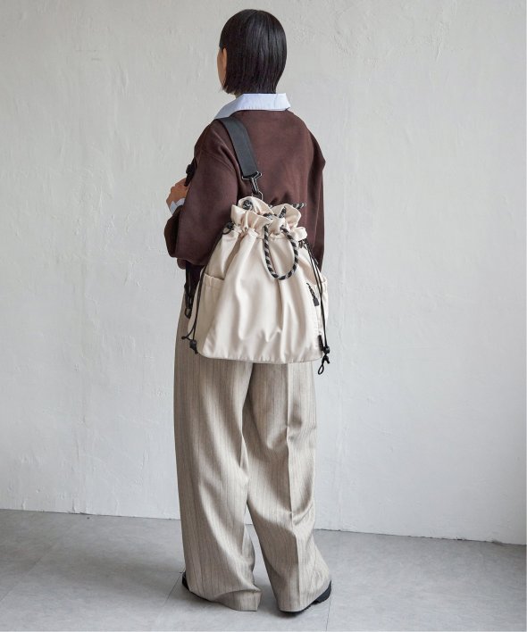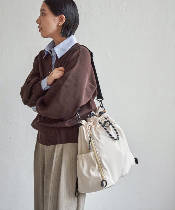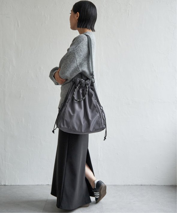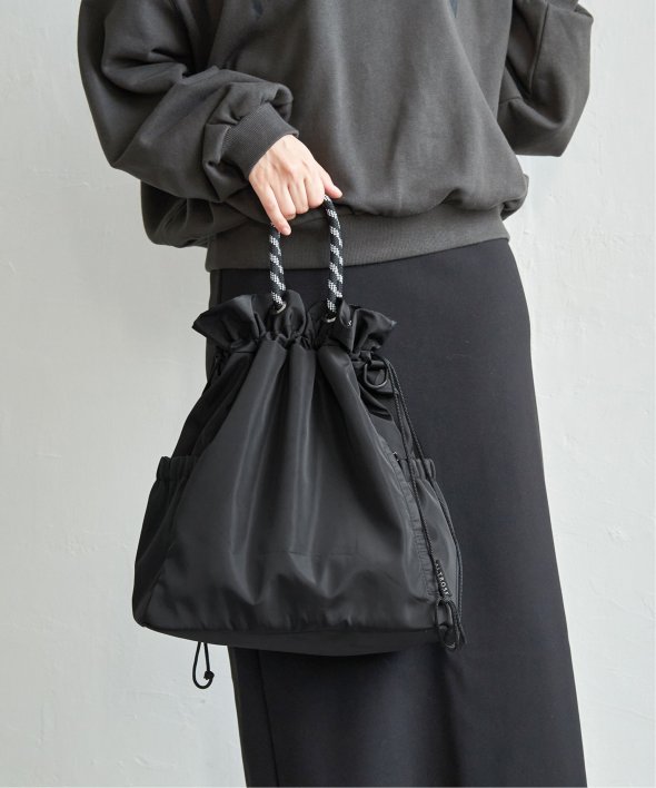 アウトドア風のロープコードの持ち手が、ほどよいアクセントになり、カジュアルにもモードにも馴染む仕上がりに。