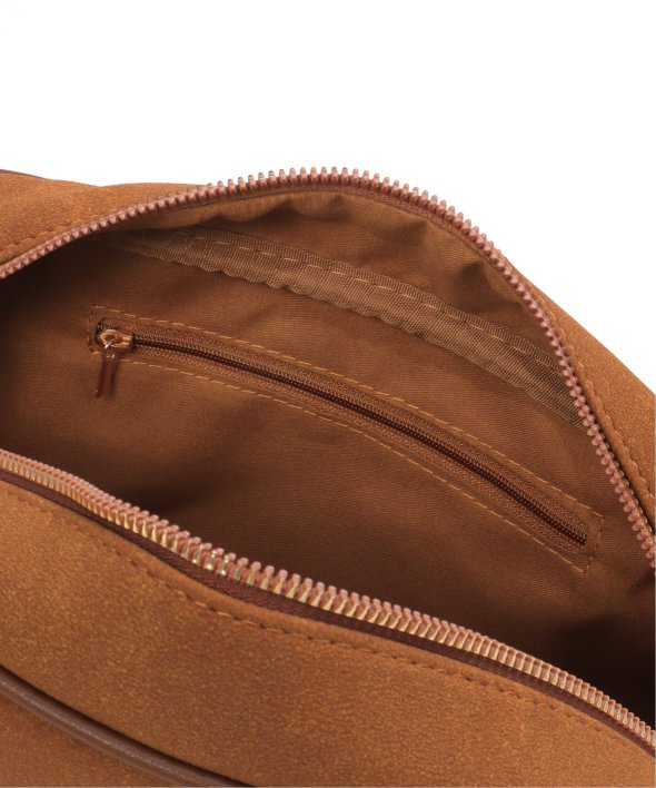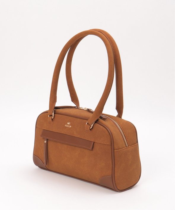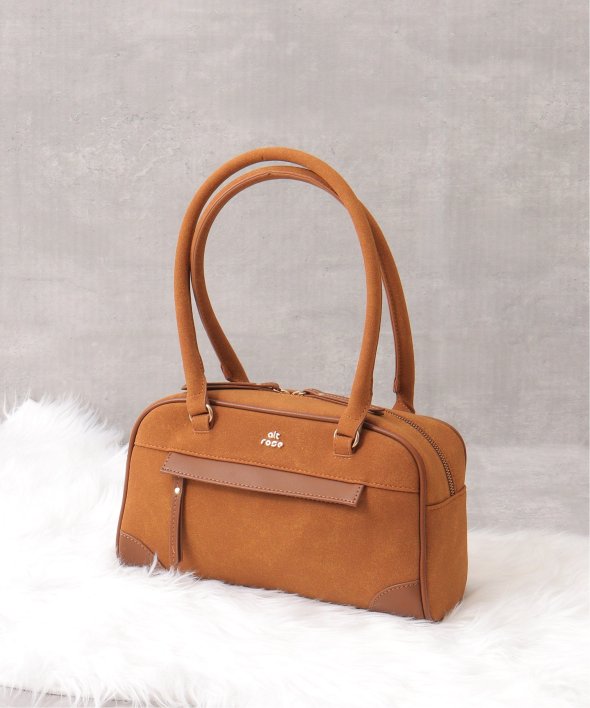 季節感のあるフェイクスウェードのボストンバッグ。