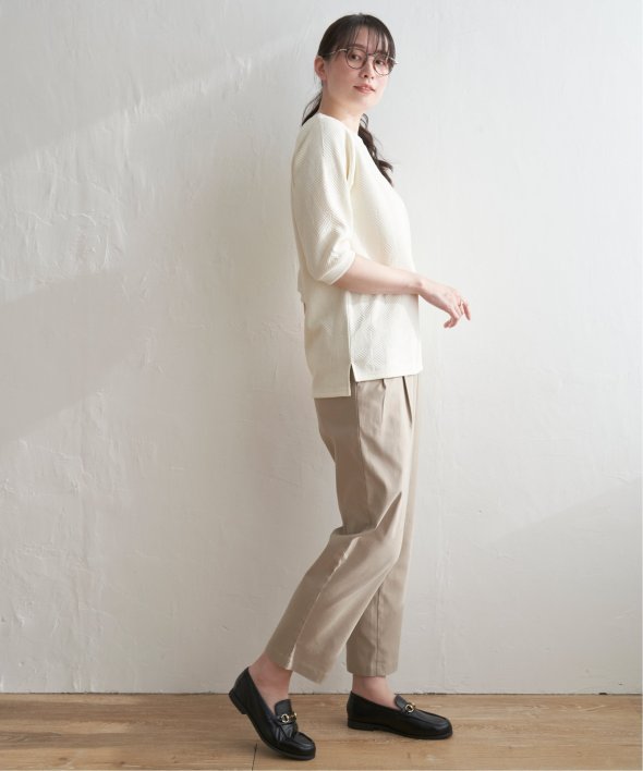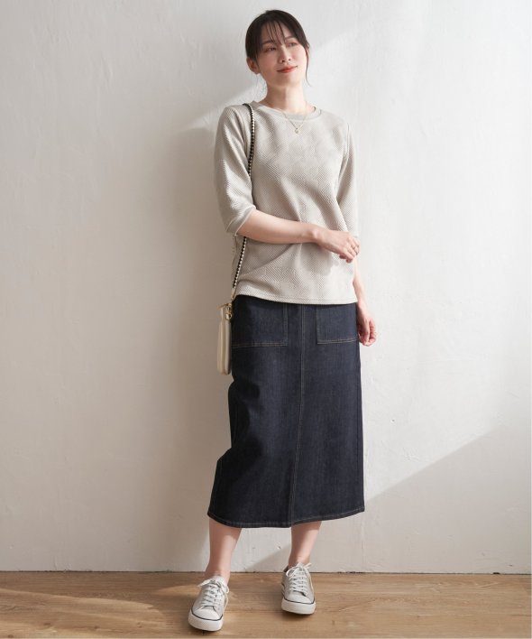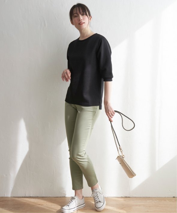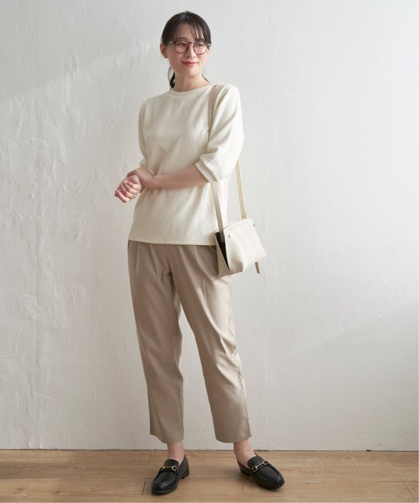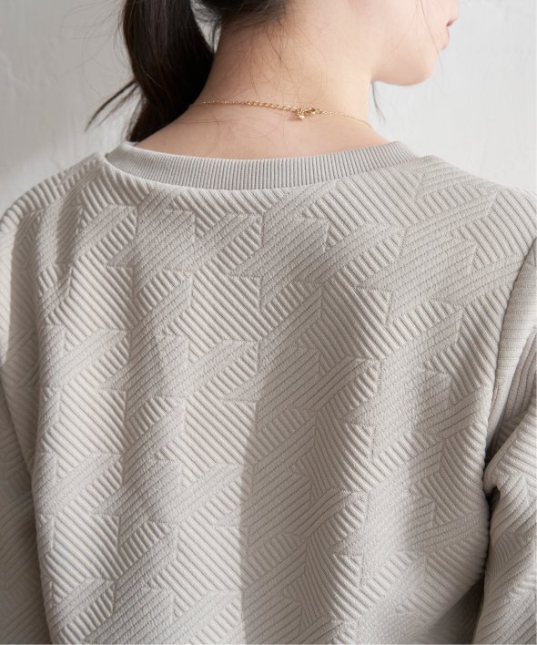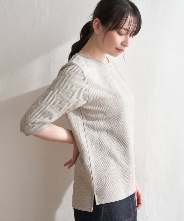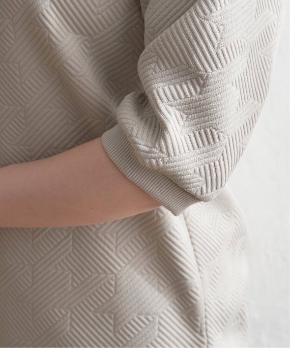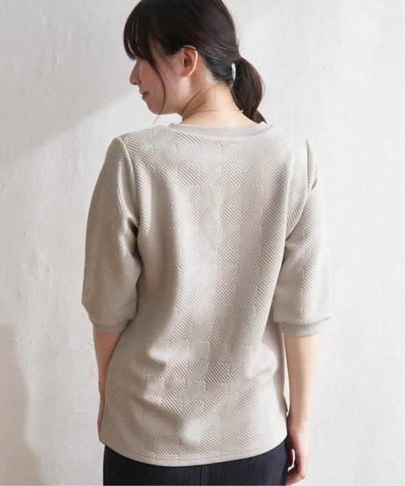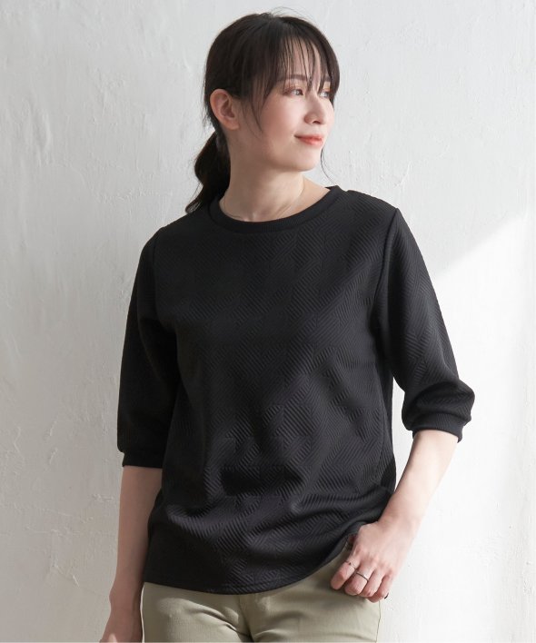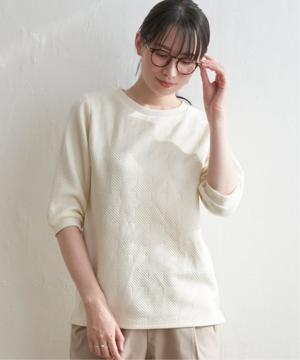 「ふくれジャカード」と呼ばれる凹凸のある生地を使用したプルオーバー。ロングシーズン使える5分袖丈がポイントです。【素材】表面の凹凸感が高級感を演出してくれるカットソー素材。着心地もラクチンです。【デザイン】5分袖で気になる二の腕カバーも叶えてくれ、一枚でサマ見え!【ikkaポイント】ぱっと見、無地に見える幾何学柄を採用。ほどよい厚みとハリ感があるため、初夏のお出かけにもおススメです。カットソーですが、高見えするのでキレイメなスタイリングにも大活躍!