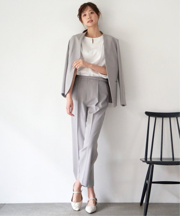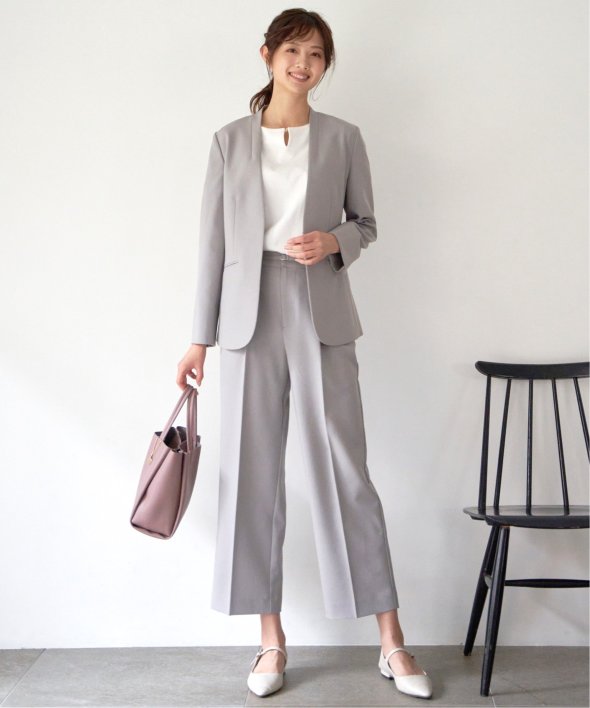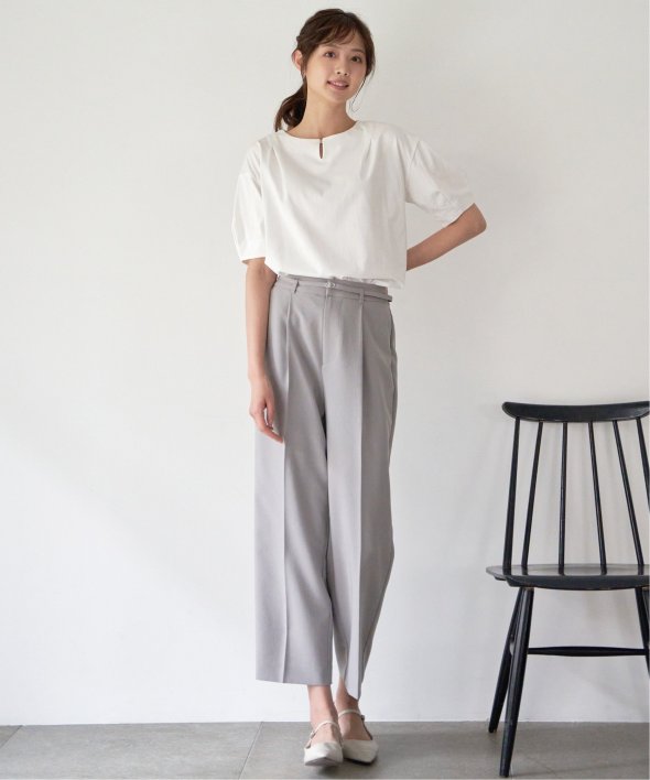 オフィスカジュアルにもタウンユースにも使えるきれい目セミワイドパンツ。