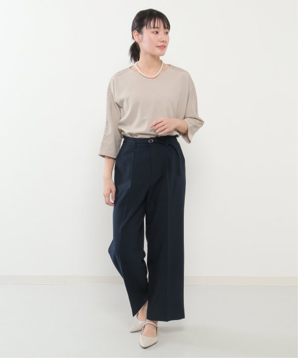 汎用性の高く、キレイめに使えるストレートラインのワイドパンツ。