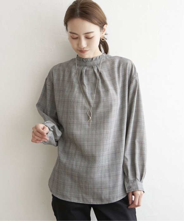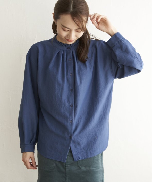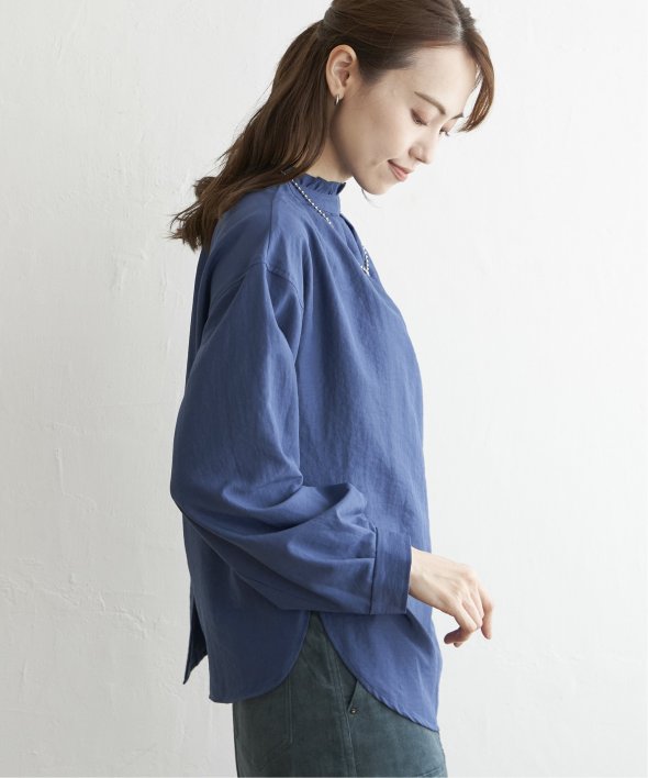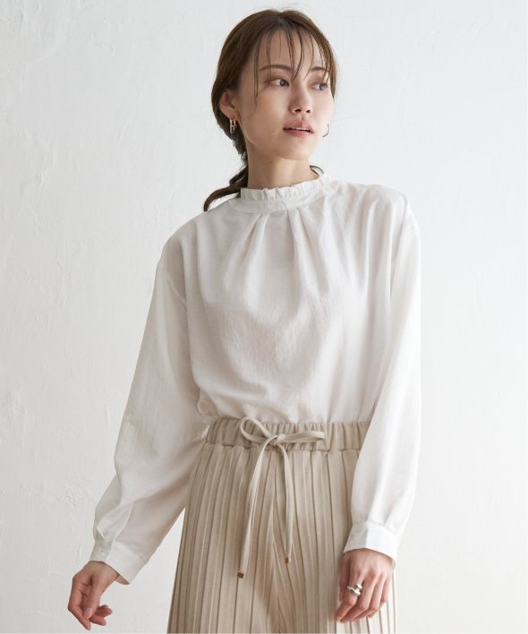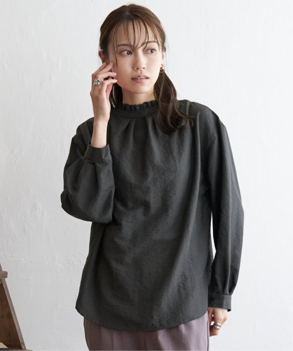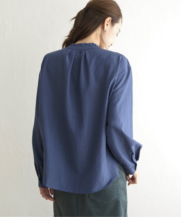 襟元にフリルが施された、前後で着用できる2WAY仕様のブラウスです。