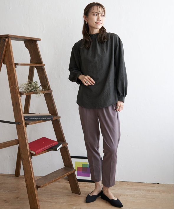 ボタン開きの面を前に持ってくれば羽織りとしても使用でき、もちろんブラウスとしても使えて万能です。