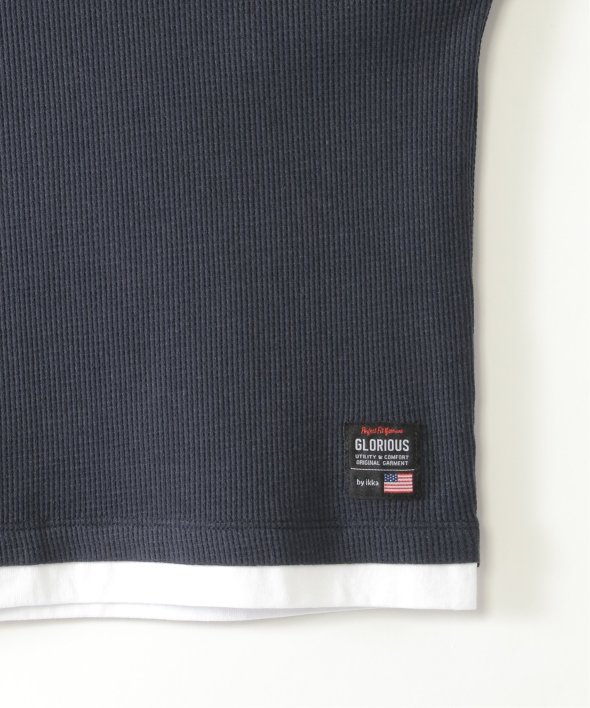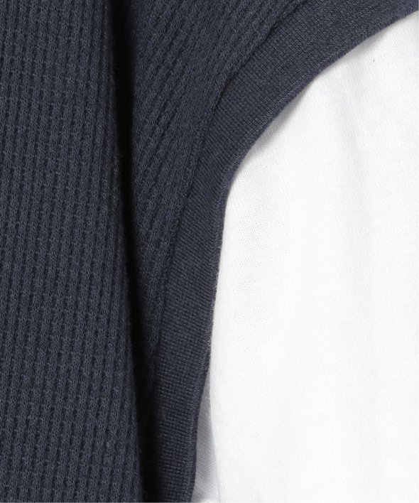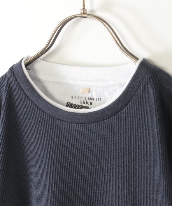 これ一枚でレイヤード風な着こなしを叶えてくれる、ドッキングデザインのTシャツ。身頃は凹凸感のあるワッフル生地で、シンプルながらも表情があります。【素材】ベスト部分はワッフル織りです。【デザイン】7分袖T×ベストの重ね着風1枚着。季節の変わり目にも活躍します。【ikkaポイント】一枚でサマになる便利アイテム!当サイトの秋冬物商品の期間限定割引価格につきまして、秋冬物は基本的に4月10日以降は一定期間正価での販売価格に戻させて頂きます。あらかじめご了承くださいませ。