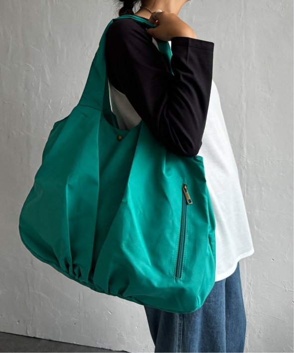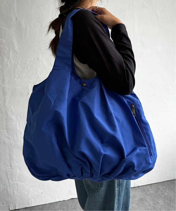 くしゅっと丸いフォルムが可愛らしいバルーントートバッグ。