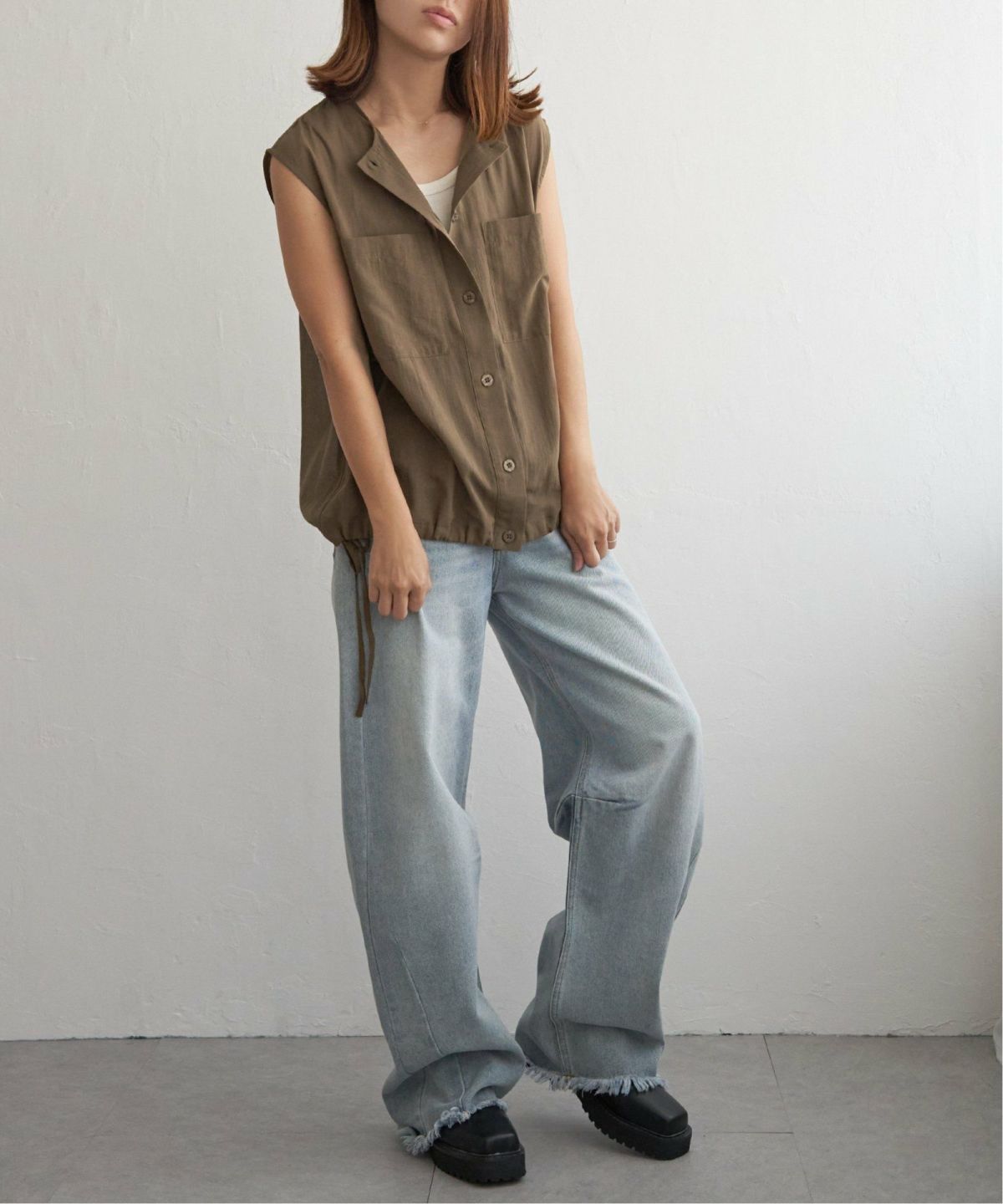 notch. モアオフ最大3000off 得春 最大1500off 他の画像を見る 裾のひと絞りで、スタイル自在に楽しめる一枚 ノースリーブノーカラーシャツ ¥ 4,994 税込 カートに入れる お気に入りに登録する