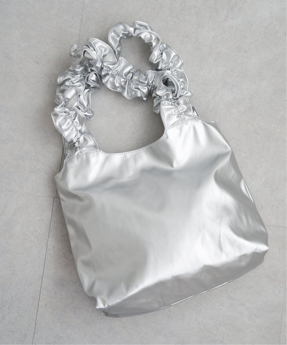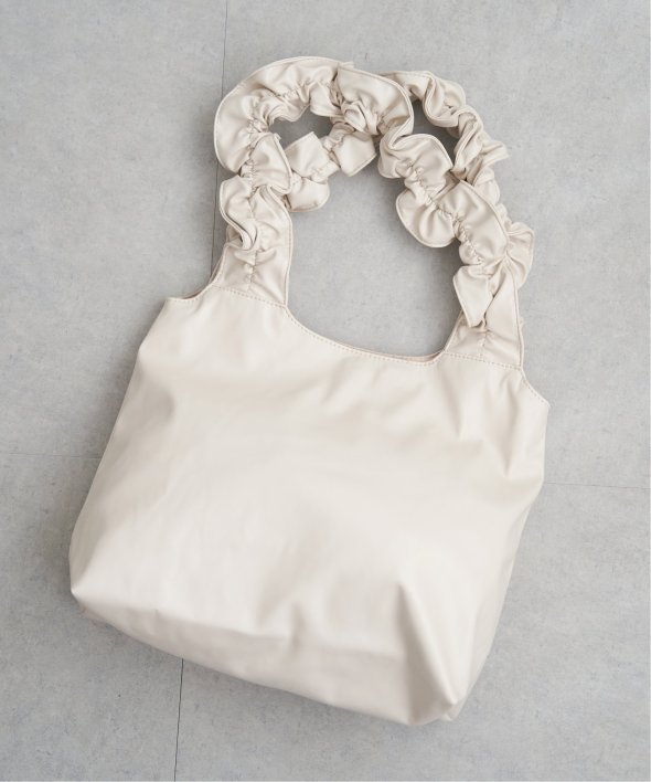 コーデに甘さをプラスするフリルハンドルのトートバッグ。