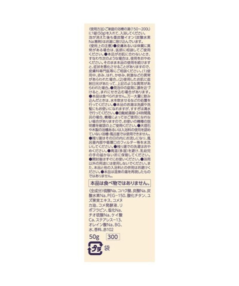 ●浴用以外の用途には使用しないでください。また本品と他の入浴料との併用はお避けください。
