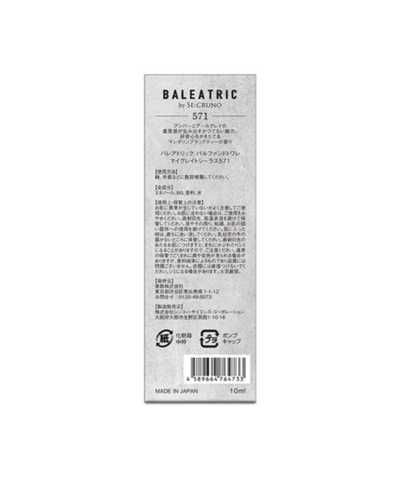 ■人気フレグランスブランド SE:CRUNOから派生したブランド「BALEATRIC」■ジェンダーレスでクセのない香りが、心の開放と豊かな時間を演出します。■アンバーな重厚感を放つ、マンダリンブラックティーの香り【商品規格】サイズ:(約)37×111×21mm【内容量】10mL