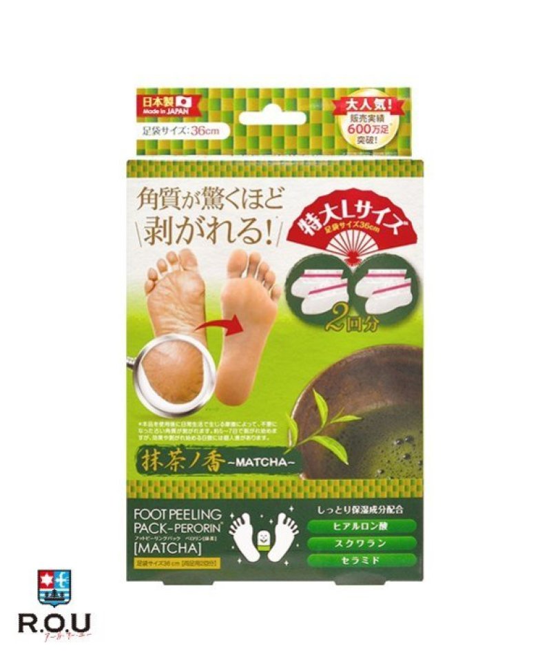 履いて流すだけの簡単ケア ! 足裏の古い角質が驚くほど剥ける ! PERORIN ペロリン フットピーリングパック ペロリン 抹茶 2回分