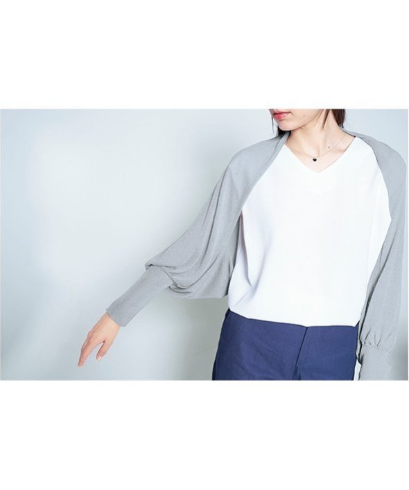 ■ゆとりあるボレロカーディガン■首に巻いてストールにも■リブ仕様で袖口スッキリ■冷んやり快適 ! ■東レグループ接触冷感糸Coolhouse使用【商品規格】パッケージサイズ:(約)105×210×45mm【重量】(約)133g