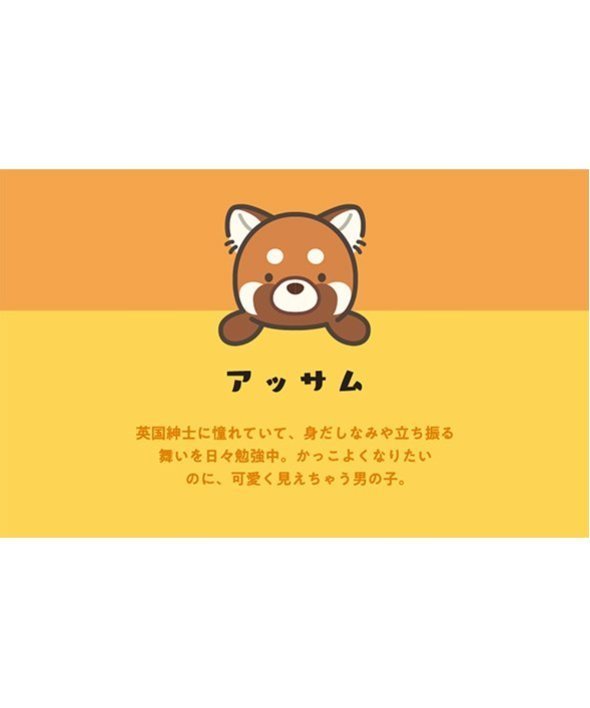 ■アッサム(レッサーパンダ)英国紳士に憧れていて、身だしなみや立ち振る舞いを日々勉強中。かっこよくなりたいのに、可愛く見えちゃう男の子。