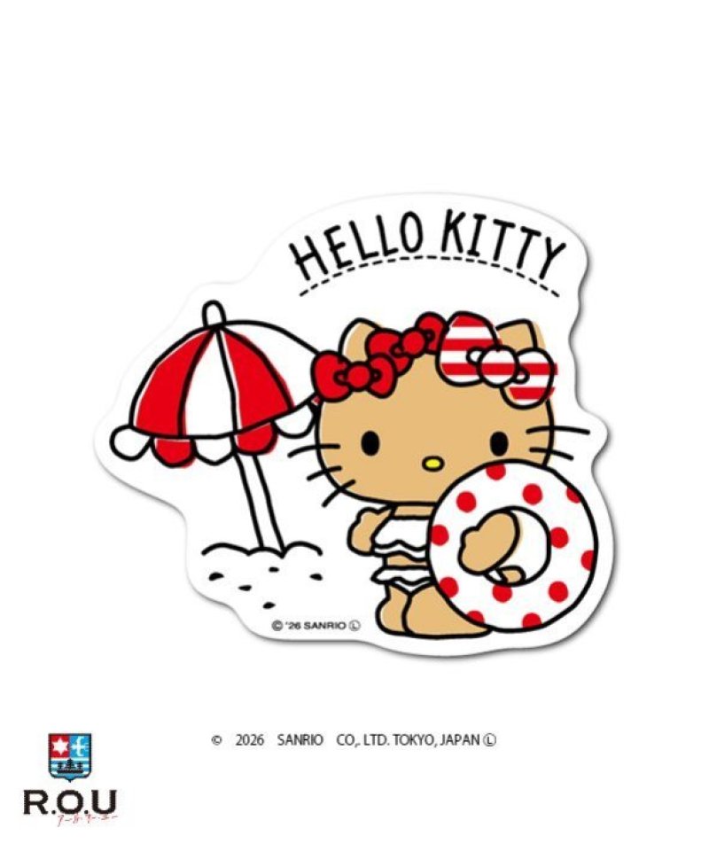 サンリオキャラの万能ステッカー サンリオキャラクターズ ハローキティ 日焼けステッカー 白 砂浜