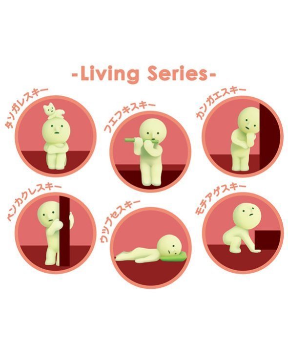 ■クッションにうつ伏せで埋もれている「ウツブセスキー」や、窓辺で笛のような楽器を奏でている「フエフキスキー」、リモコンや雑誌を持ち上げようとしている「モチアゲスキー」たちが、リビング空間をクスッと笑えてさらにくつろげる空間に彩ります。