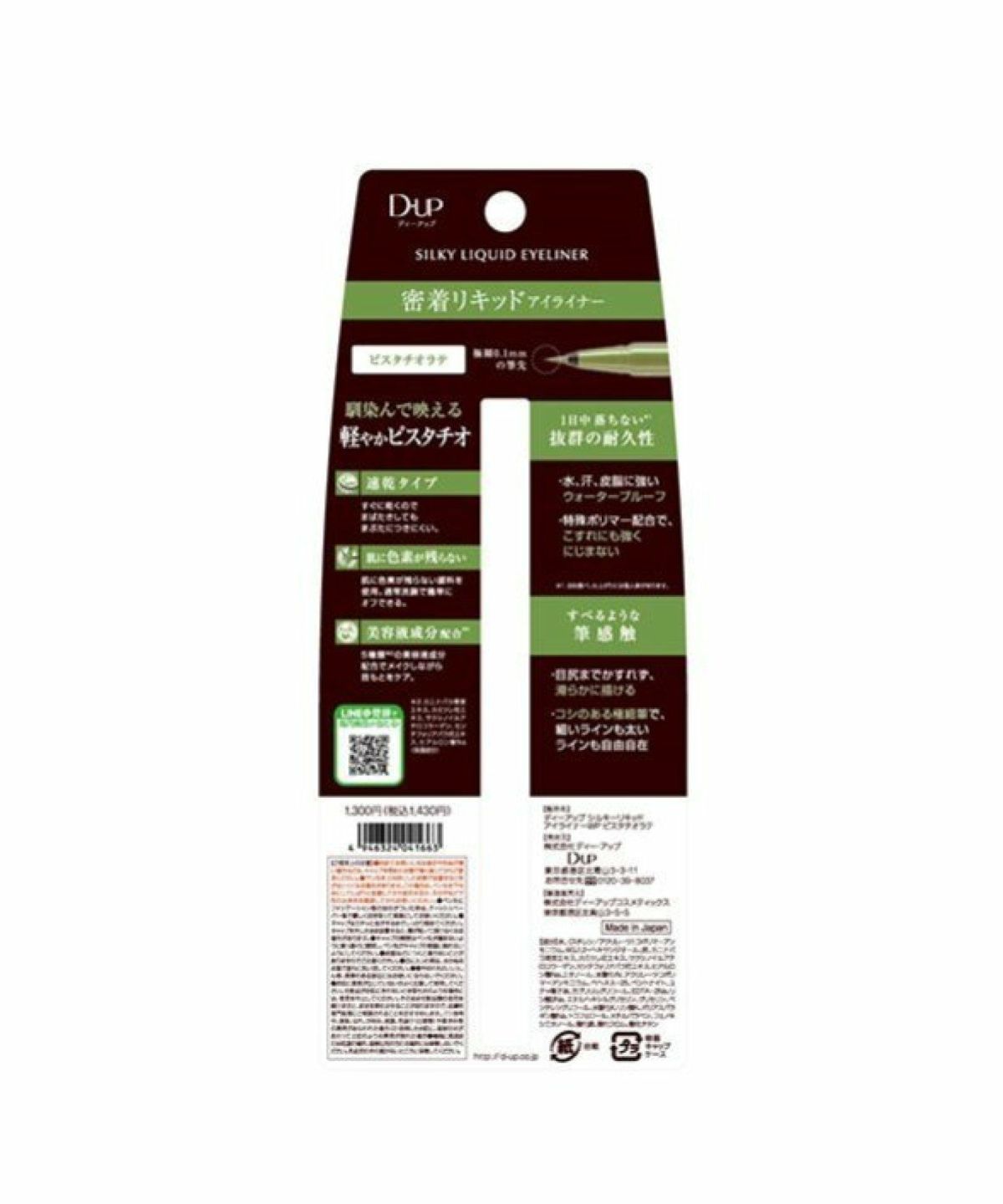 ROU 他の画像を見る 密着リキッドアイライナー すべるような描き心地 ディー・アップ D.U.P シルキーリキッドアイライナー ウォータープルーフ ピスタチオラテ ディーアップ D-UP シルキーリキッドアイライナー WP ピスタチオラテ ¥ 1,430 税込 カートに入れる お気に入りに登録する