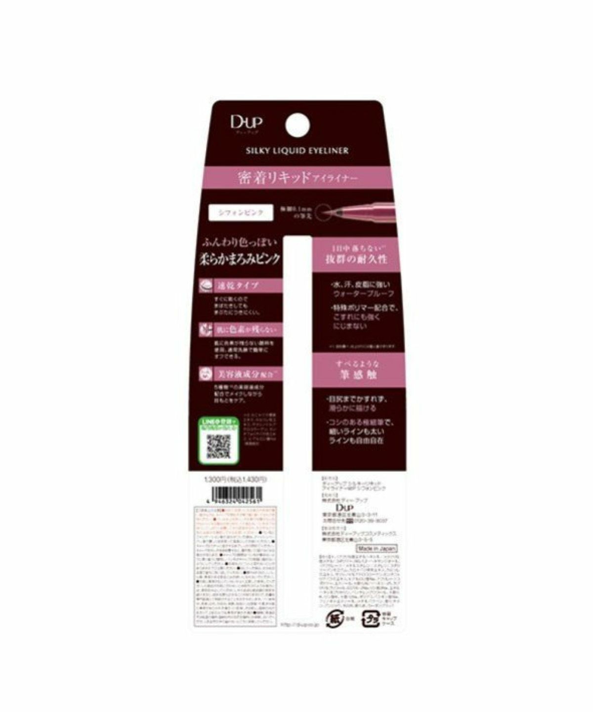 ROU 他の画像を見る 密着リキッドアイライナー すべるような描き心地 ディー・アップ D.U.P シルキーリキッドアイライナー ウォータープルーフ シフォンピンク ディーアップ D-UP シルキーリキッドアイライナー WP シフォンピンク ¥ 1,430 税込 カートに入れる お気に入りに登録する