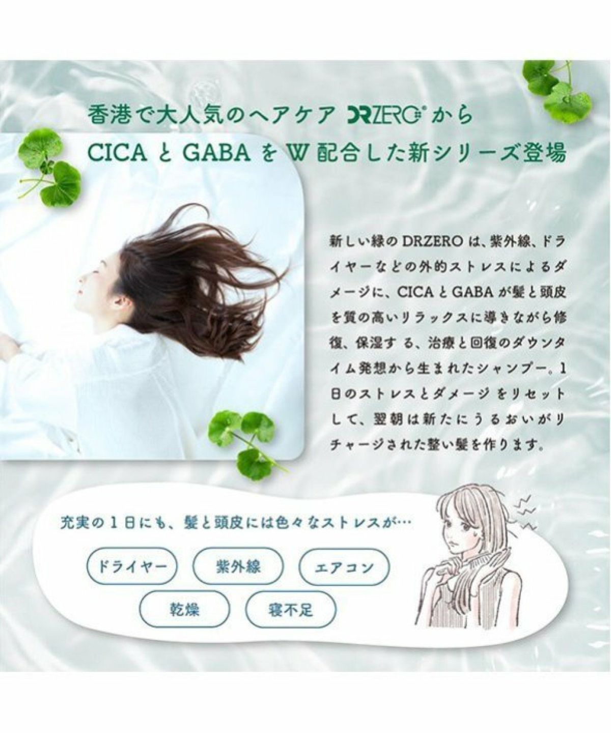 ROU 他の画像を見る CICA×GABAがダメージを修復・保湿。ダメージ補修しなめらかな洗い心地のシャンプー DR ZERO ドクターゼロ CICA&GABA ヘア&スカルプシャンプー 430mL 女性用 ¥ 1,430 税込 カートに入れる お気に入りに登録する