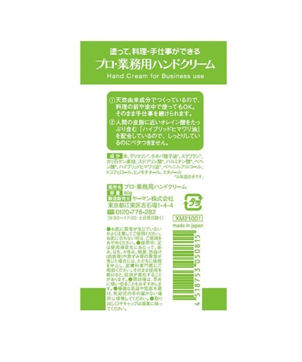 しっとりしているのにベタつかない使用感。天然由来成分のみで、料理の前や途中にも安心してお使いいただけます。無香料タイプ プロ・業務用 ハンドクリーム 無香料 60g プロ・業務用 ハンドクリーム 無香料 60g【ヤーマン】