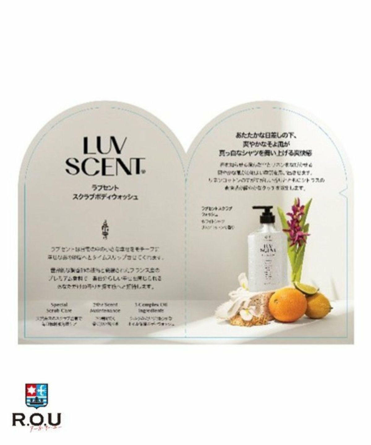 ROU 他の画像を見る あなただけの香りを楽しむ。毎日やさしく角質ケアができるパフュームスクラブボディウォッシュ LUV SCENT ラブセント スクラブウォッシュ ホワイトシャツ リネン コットン 500mL ¥ 1,650 税込 カートに入れる お気に入りに登録する