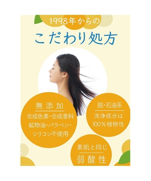 ■搾りたてオレンジ(※)で爽やかシャンプータイム ! ニオイや汚れまですっきり洗い上げて軽やかな髪と地肌に ! ■おだやかなうるおいで傷んだ髪もサラツヤ、きしみやからみも気になりません。■天然由来のオレンジ果汁を配合、爽やかなオレンジの香りがバスルームいっぱいに広がります。■素肌と同じ弱酸性&石けんベース■パラベン&アルコール不使用■無色素・無香料・無鉱物油・ノンシリコン■つめかえ用※オレンジ果汁(保湿)【商品規格】サイズ:(約)127×217×60mm【内容量】340mL