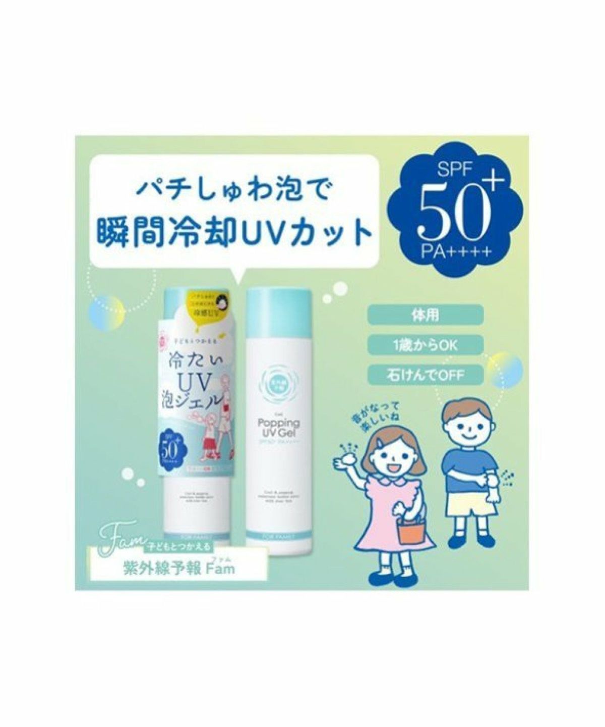 ROU 他の画像を見る 在庫切れ パチしゅわ泡がはじける冷感UVで、暑い日のお出かけも家族で楽しくケア 紫外線予報 冷たいUV泡ジェル F SPF50+ PA++++ 90g【石澤研究所】 ¥ 1,980 税込 カートに入れる お気に入りに登録する
